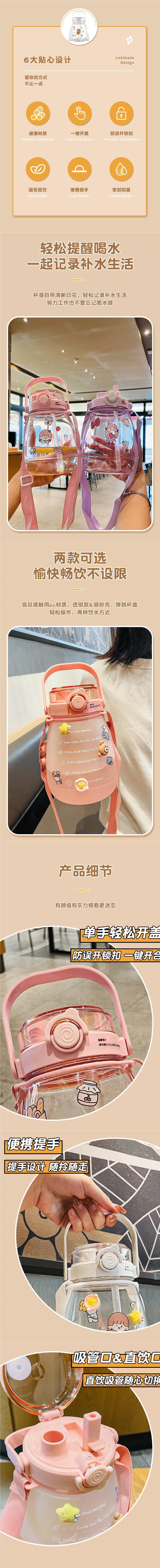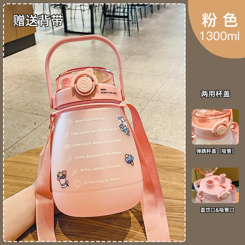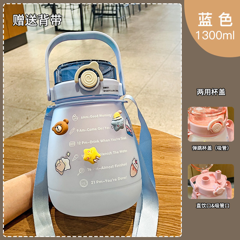 KMN3 대용량 밀짚 컵 여자 어린이 물병 플라스틱 드롭 방지 휴대용 귀여운 서리 큰 배 마시는 컵스토어 가기