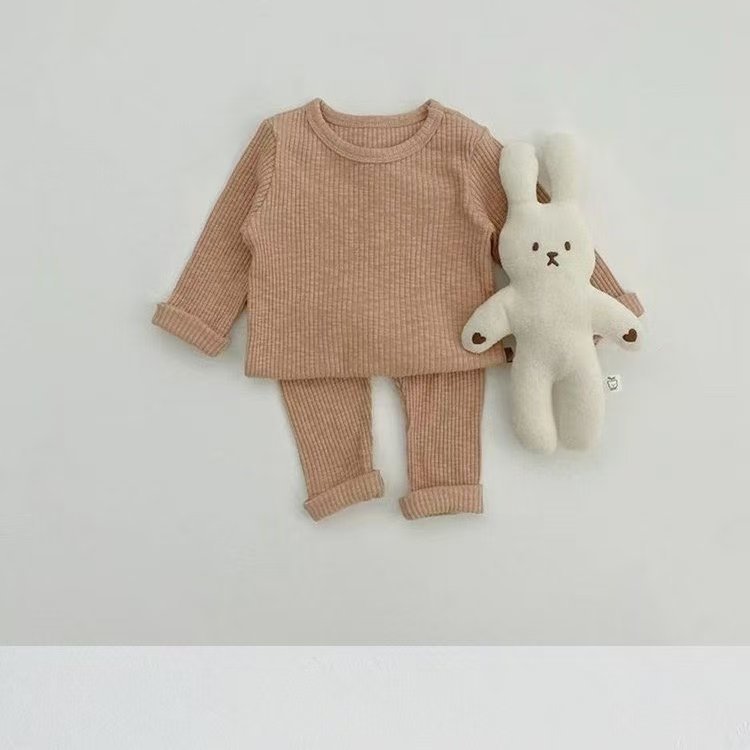 Ins 스타일 베이비 핏 스트립 탄성 편안한 속옷 세트 아기 소년과 소녀 가을과 겨울 홈 잠옷베이스 가을 옷