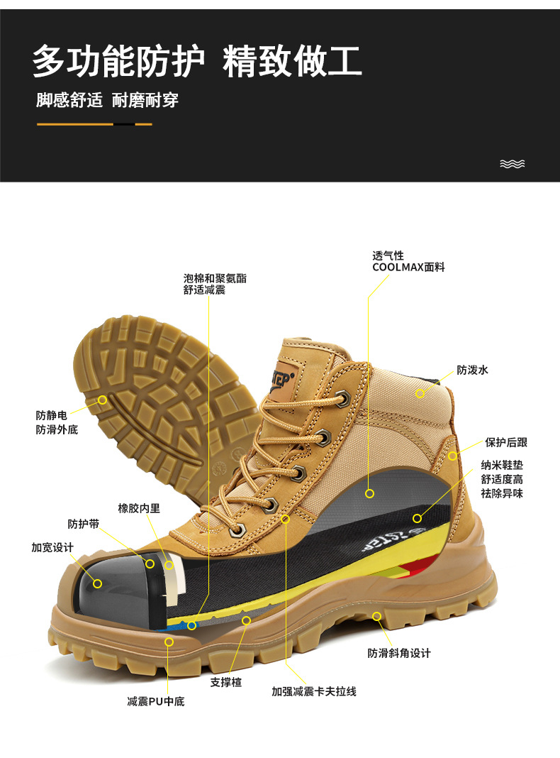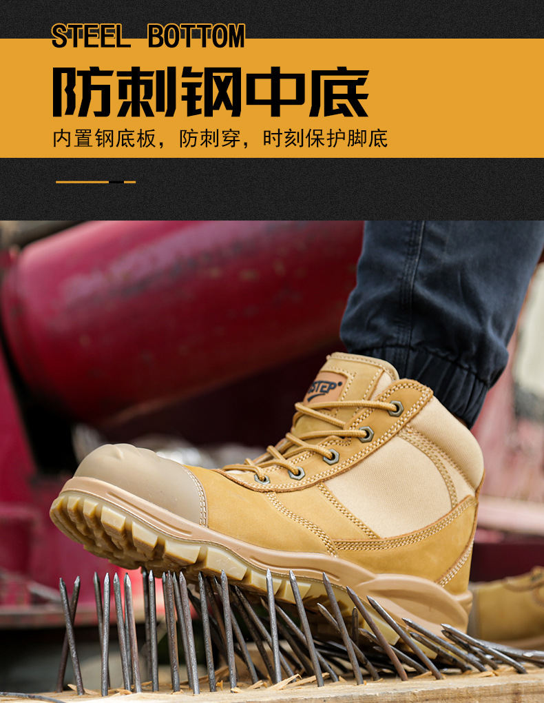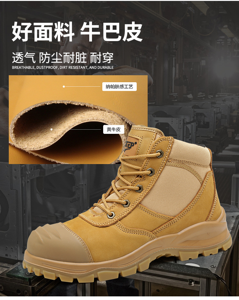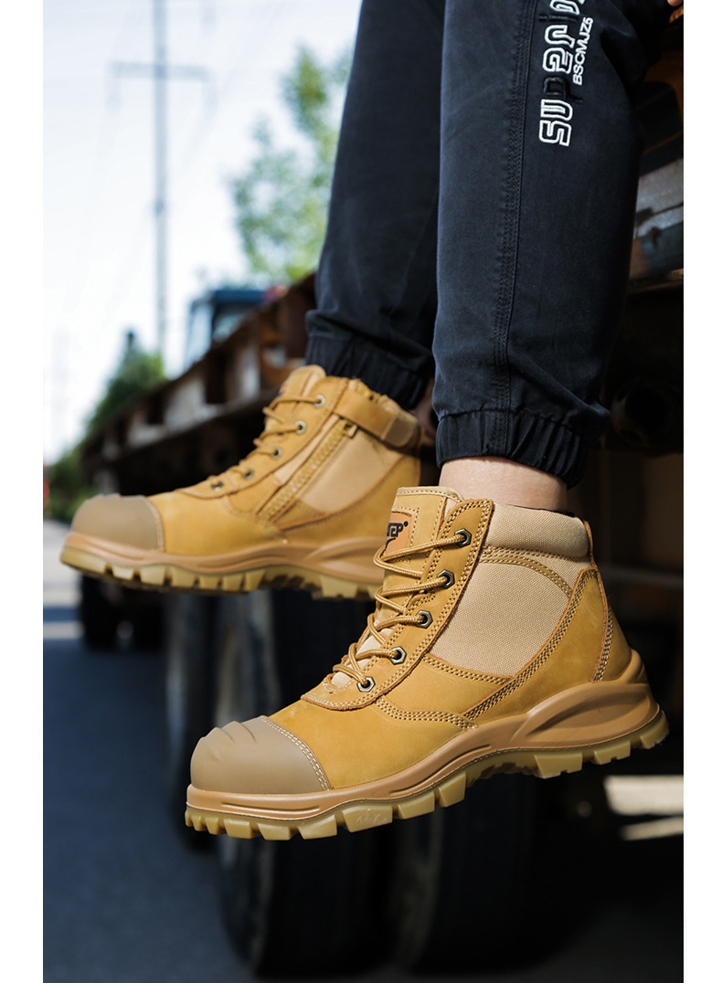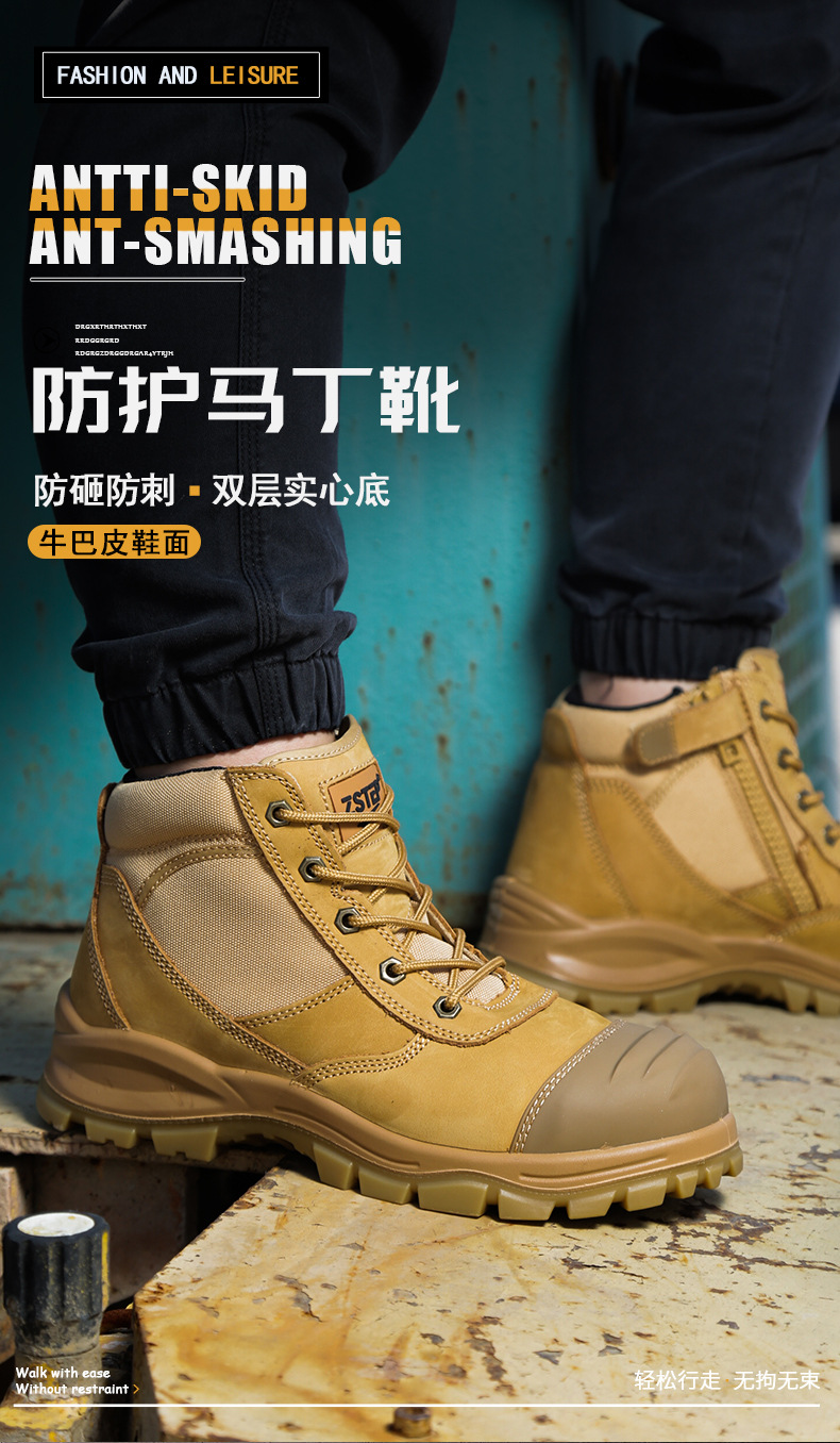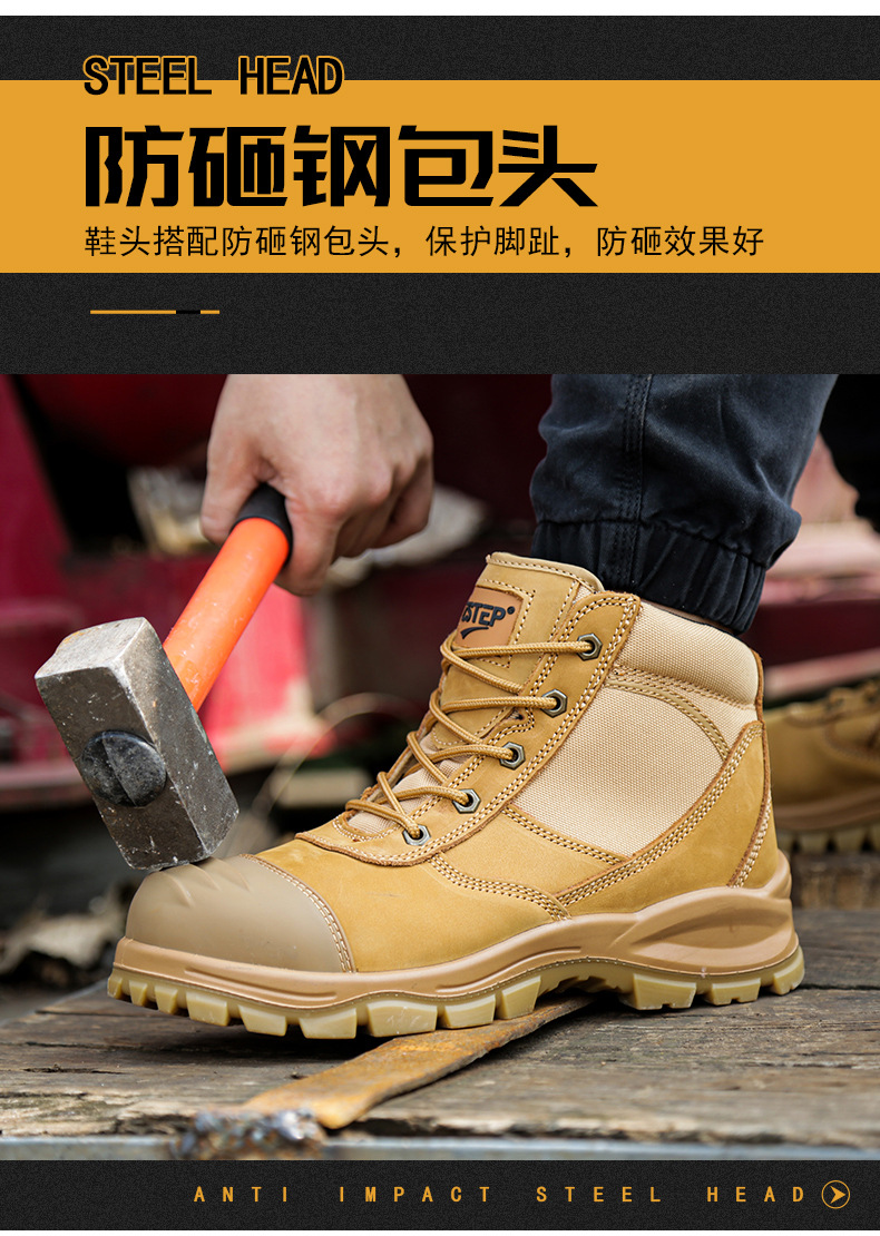 국경 간 뜨거운 판매 4 계절 노동 보호 신발 남성 스틸 헤드 안티 스매싱 안티 스매싱 안전 신발 헤드 레이어 소 가죽 굿 이어 프로세스스토어 가기