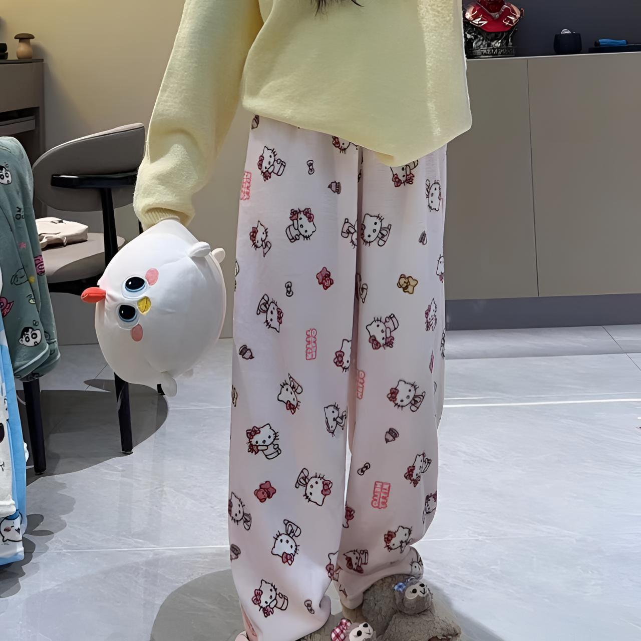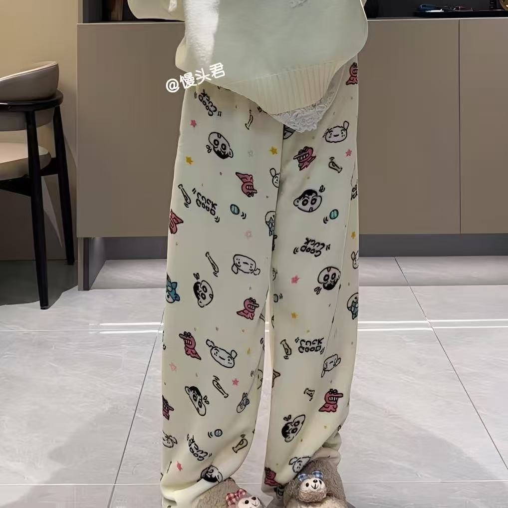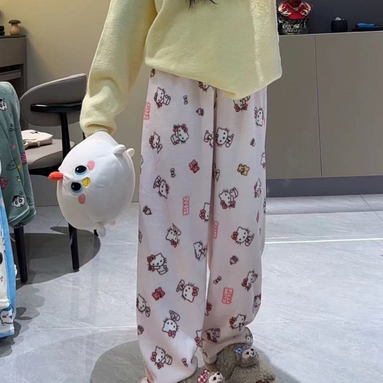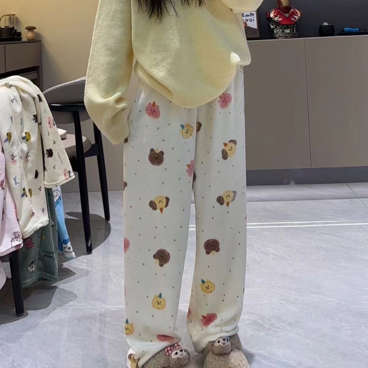 겨울 만화 파자마 바지 여자의 새로운 플란넬 기모 두꺼운 캐주얼 느슨한 따뜻한 귀여운 바지 걷는 바지스토어 가기