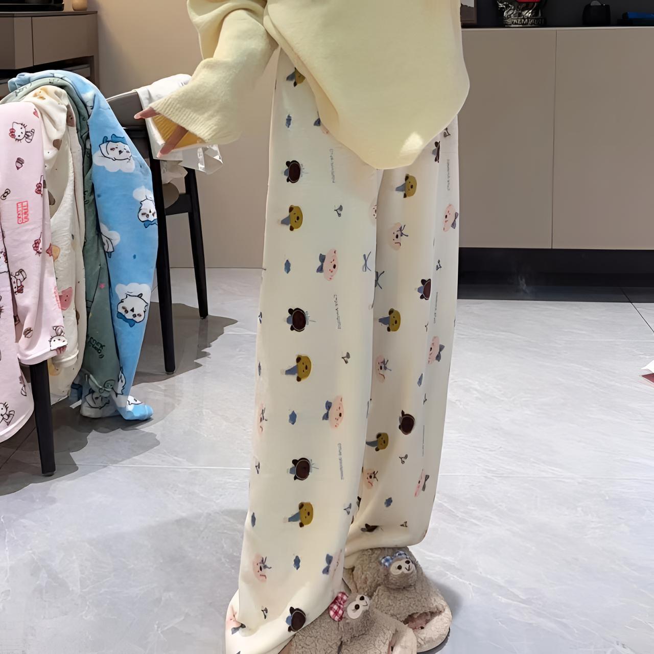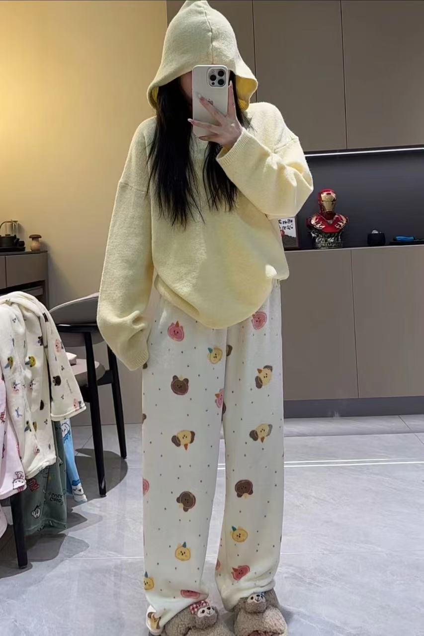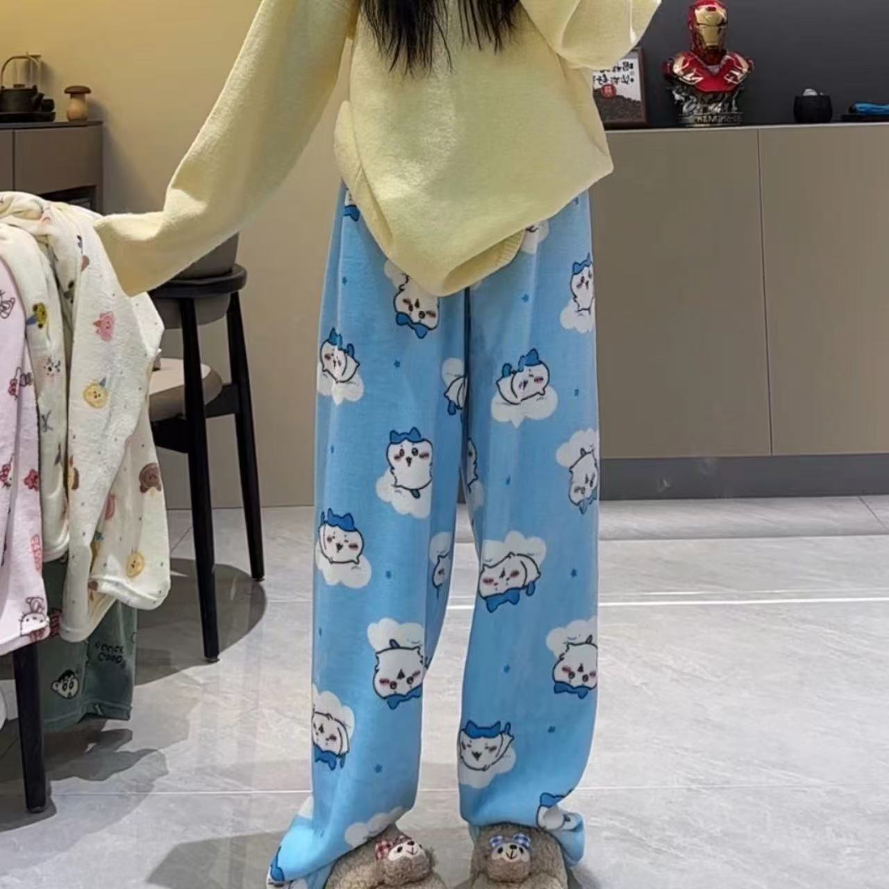 겨울 만화 파자마 바지 여자의 새로운 플란넬 기모 두꺼운 캐주얼 느슨한 따뜻한 귀여운 바지 걷는 바지