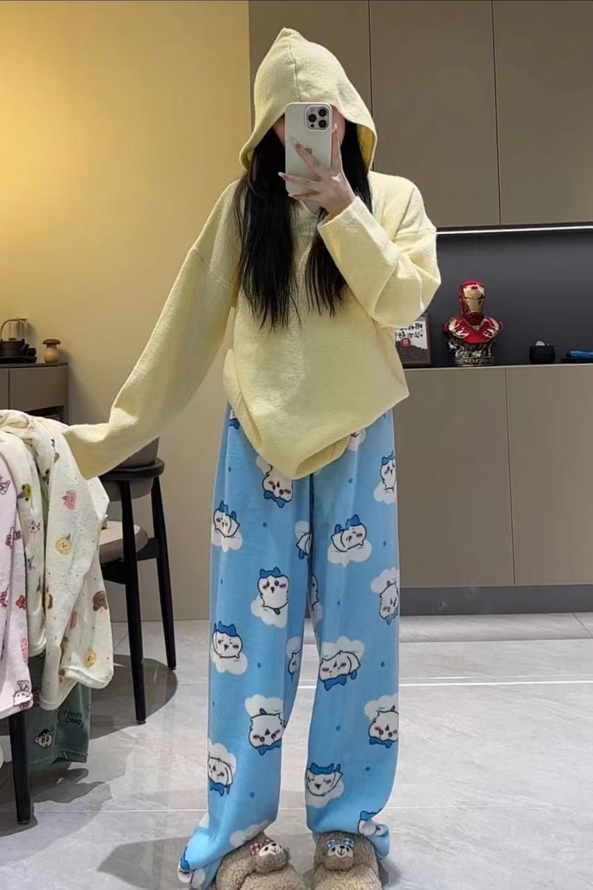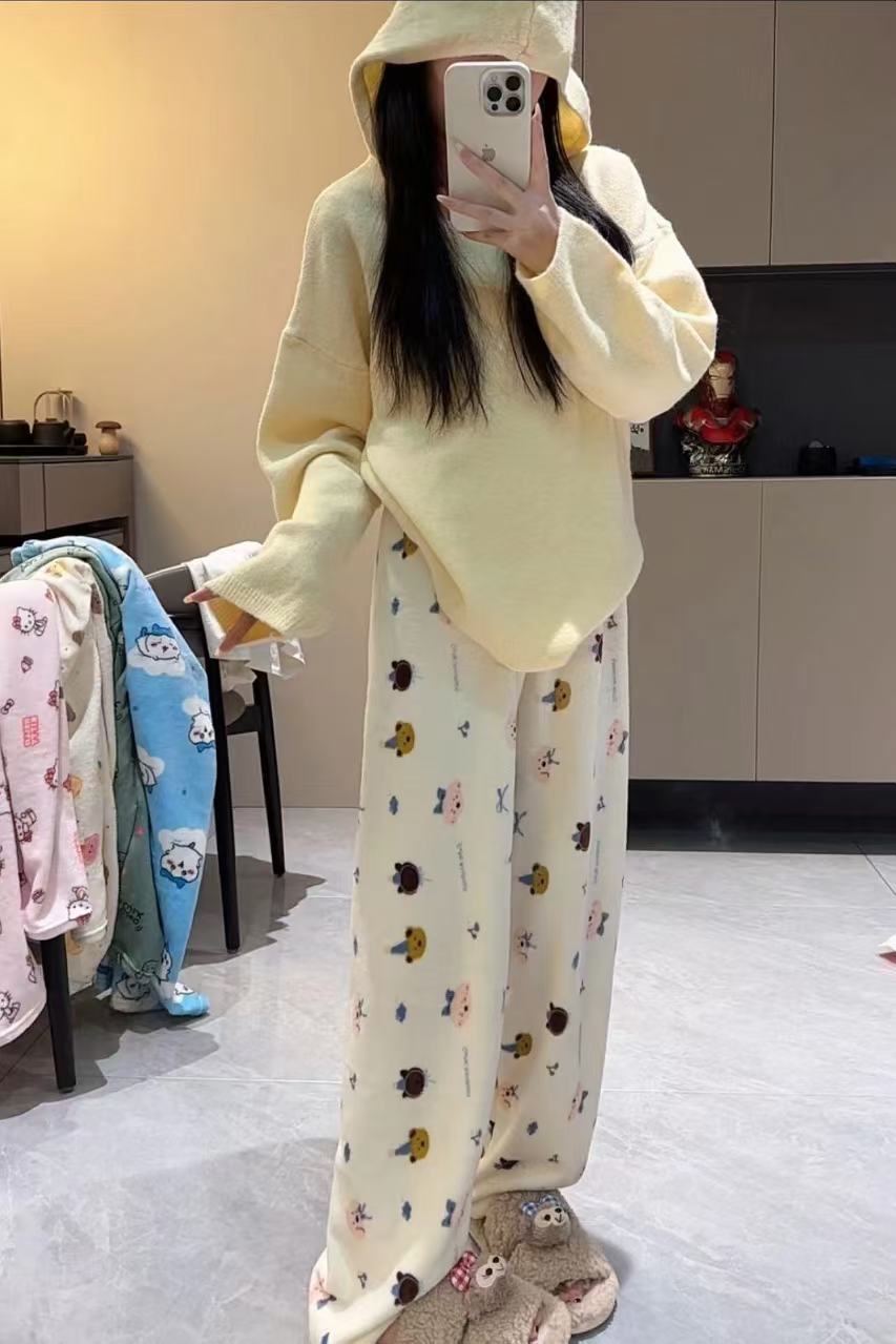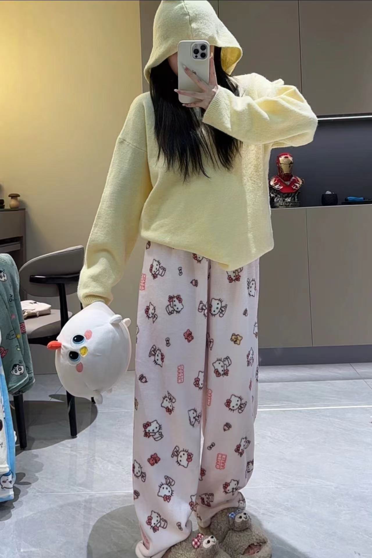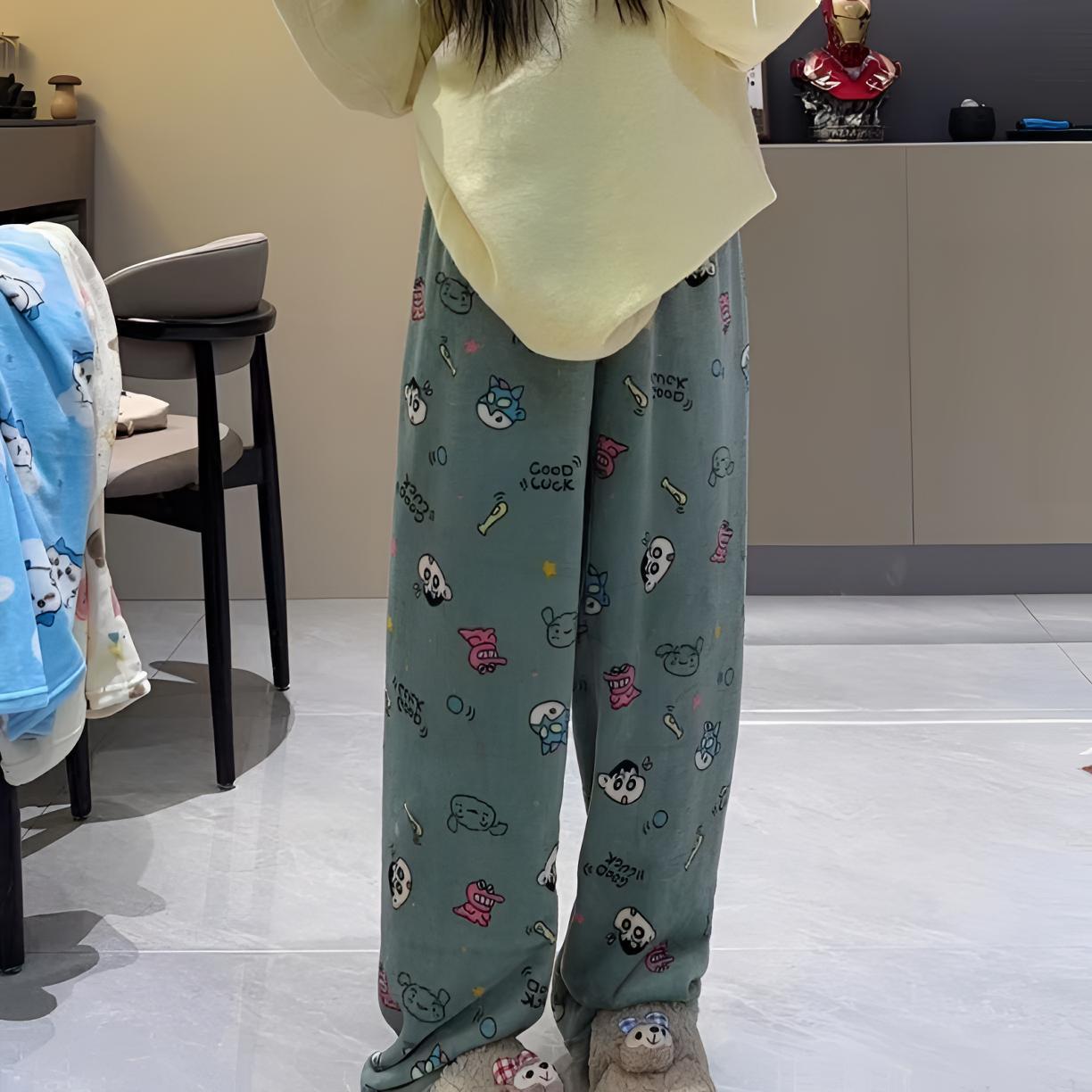 겨울 만화 파자마 바지 여자의 새로운 플란넬 기모 두꺼운 캐주얼 느슨한 따뜻한 귀여운 바지 걷는 바지