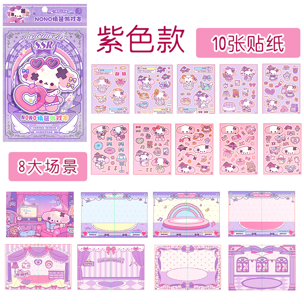 초기 NONO 개 원피스 게임 책 스티커 소녀 어린이 3 ~ 6 세 스티커 만화 귀여운 원피스 업 장면 변경스토어 가기