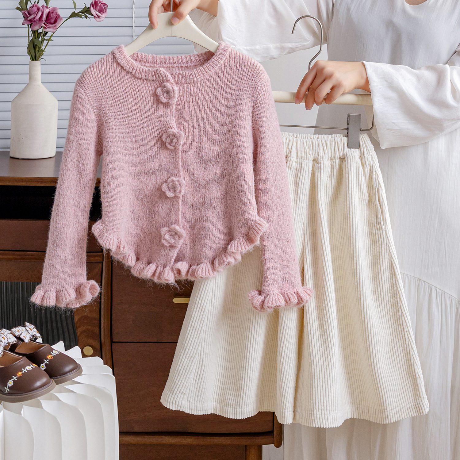 여아 니트 가디건 2025 가을 신상 아동용 달콤한 레이스 스웨터 여아 입체 꽃무늬 상의 트렌디
