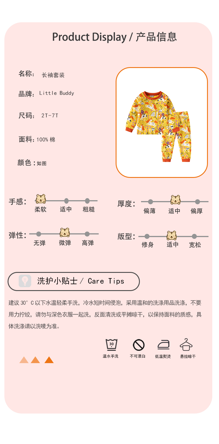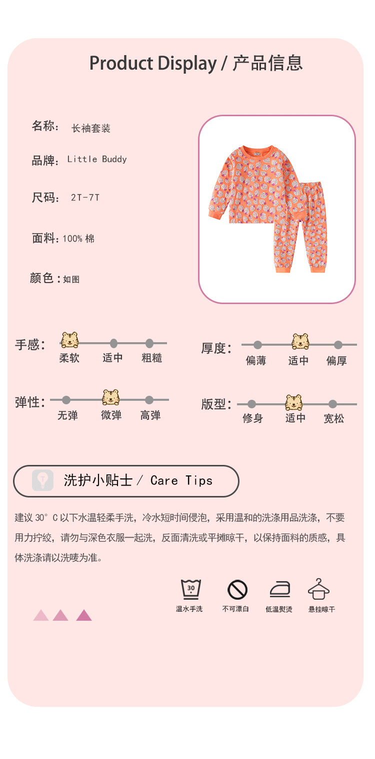 Littlebuddy 봄과 가을 2-7 어린이 홈 의류 세트 얇은 달콤한 긴 소매 잠옷스토어 가기