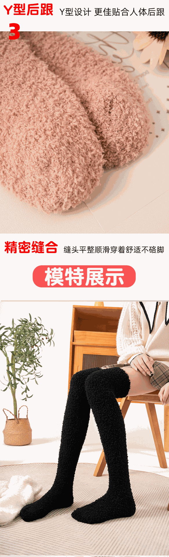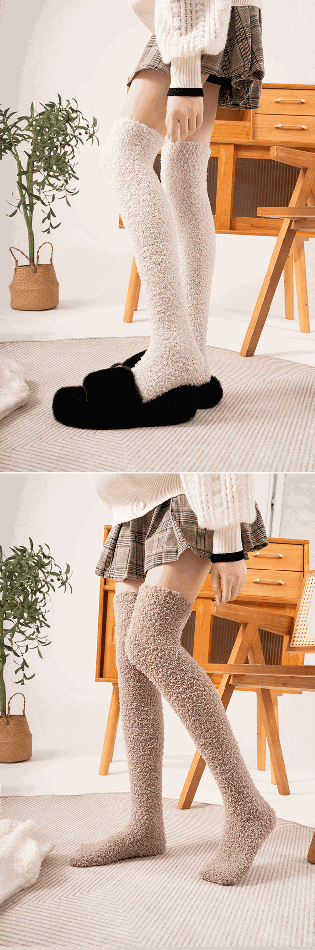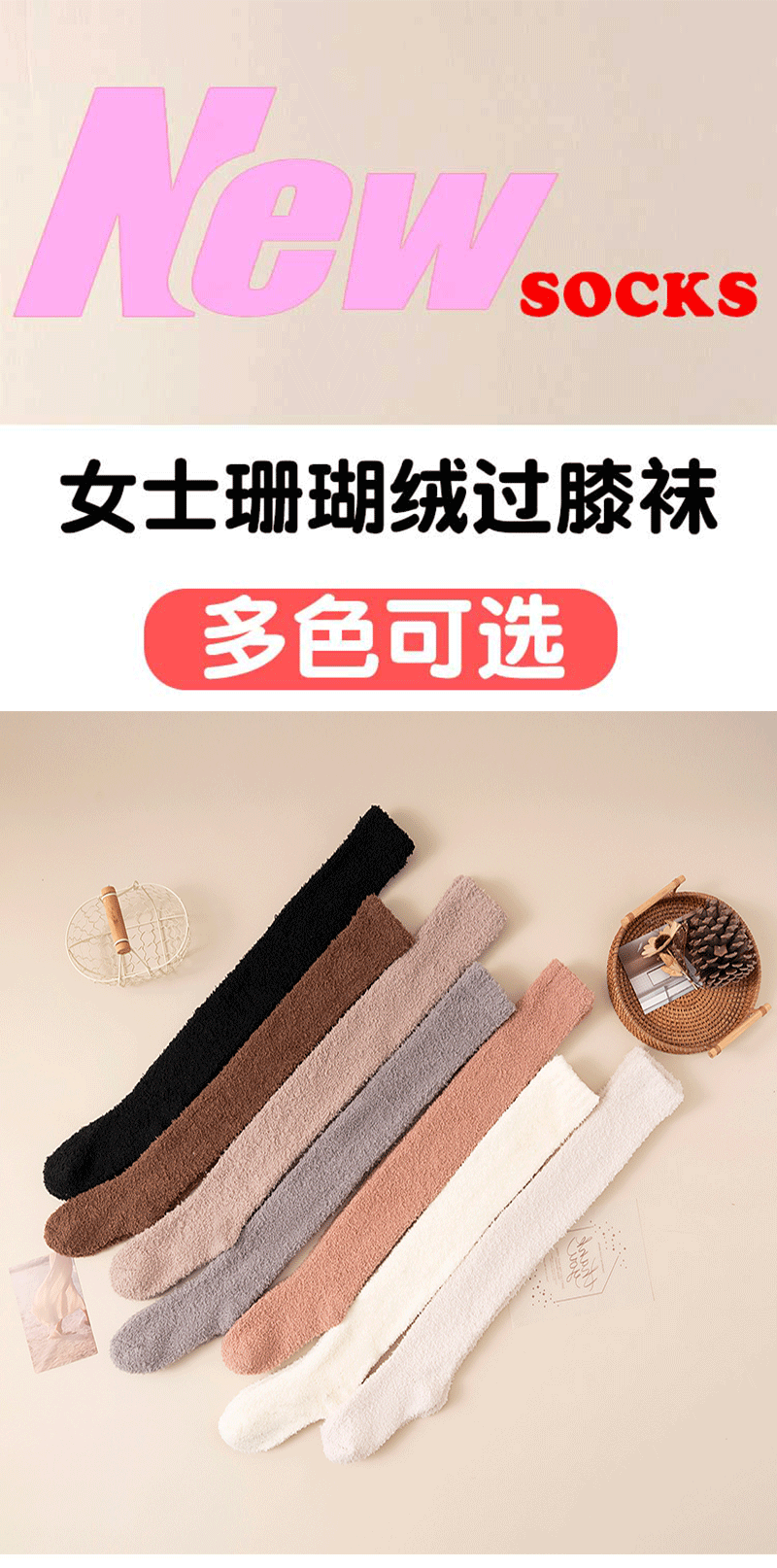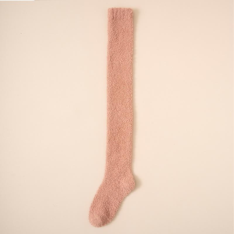 재고 여성용 산호 양털 무릎 양말 기모 두꺼운 스타킹 린트 프리 하이 양말 가을과 겨울 따뜻한 다리 양말
