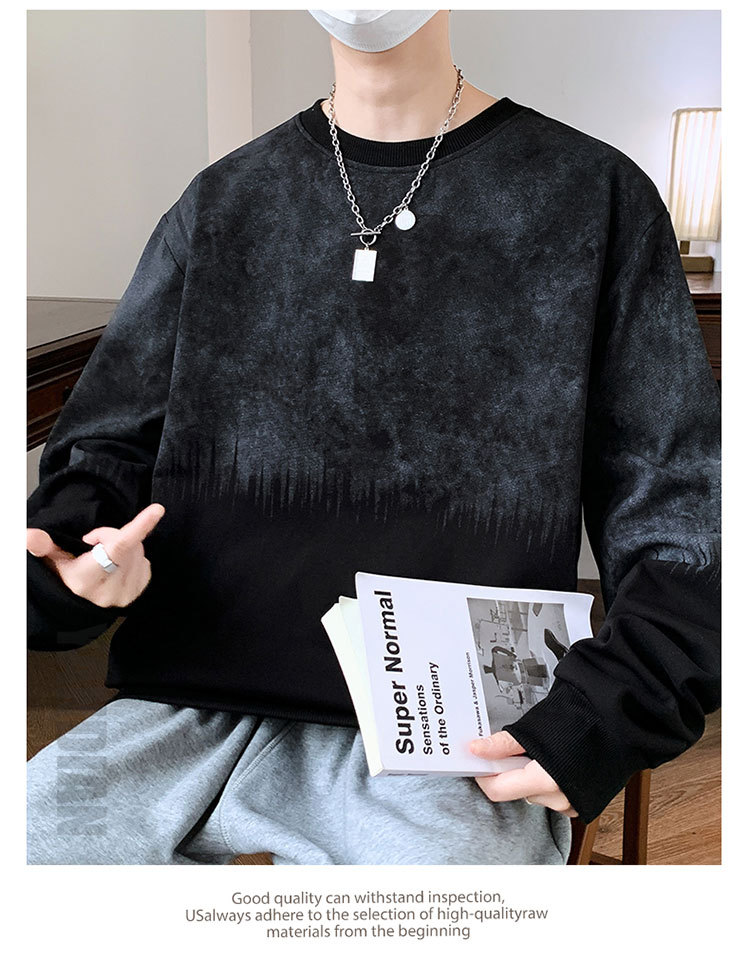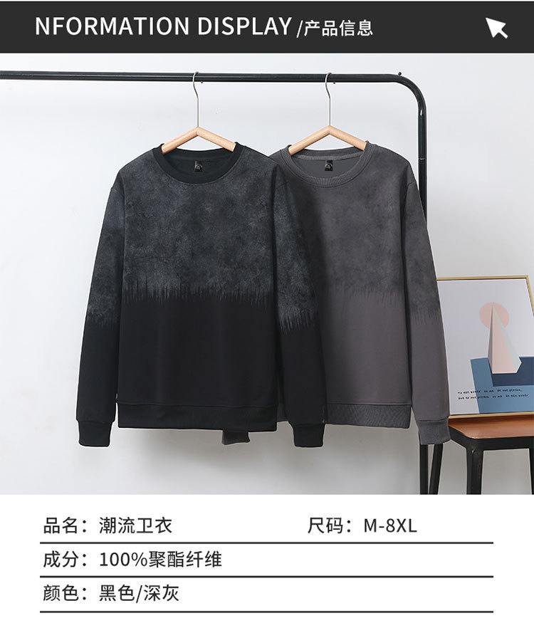 2024 가을/겨울 뉴 인 홍콩 스타일 둥근 목 땀 남자 느슨한 플러스 사이즈 뚱뚱한 남자 유행 인쇄 커플 재킷