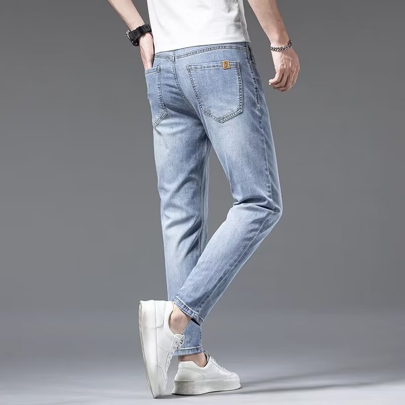 봄과 가을 새로운 9 점 청바지 남성용 슬림 핏 레깅스 올매치 캐주얼 라이트 컬러 롱 팬츠스토어 가기