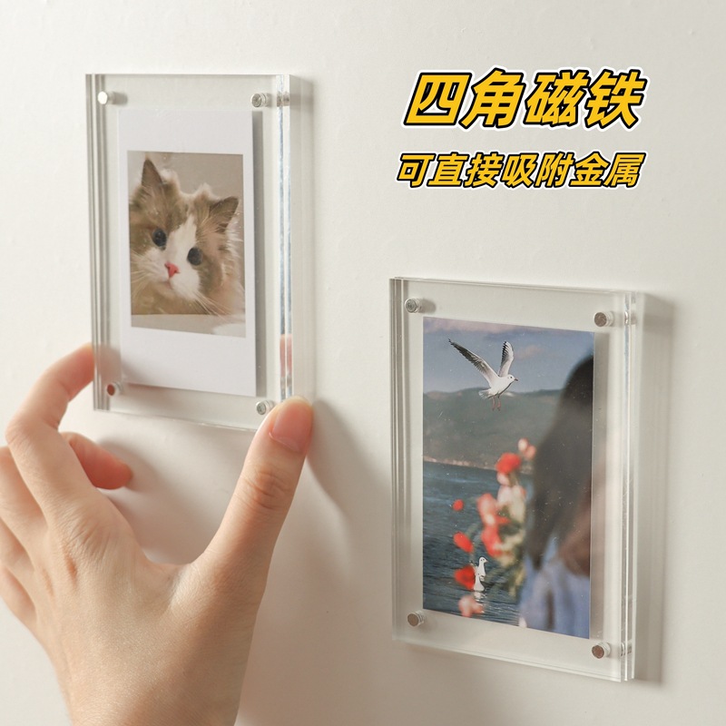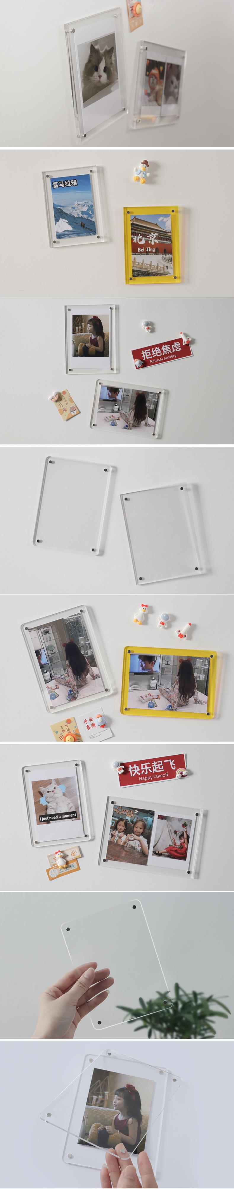 아크릴 폴라로이드 사진 프레임 자기 매력 여행 사진 벽 카드 디스플레이 스탠드 작은 카드 사진 냉장고 디스플레이 프레임