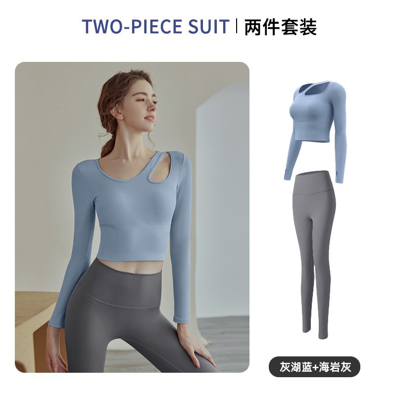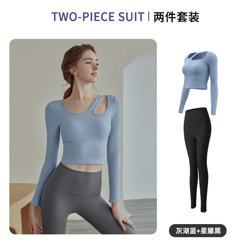 여성용 스포츠 브라 충격방지 긴팔 피트니스웨어 속건 야외 타이트웨어 요가복 상의 고급 세트 여성용스토어 가기