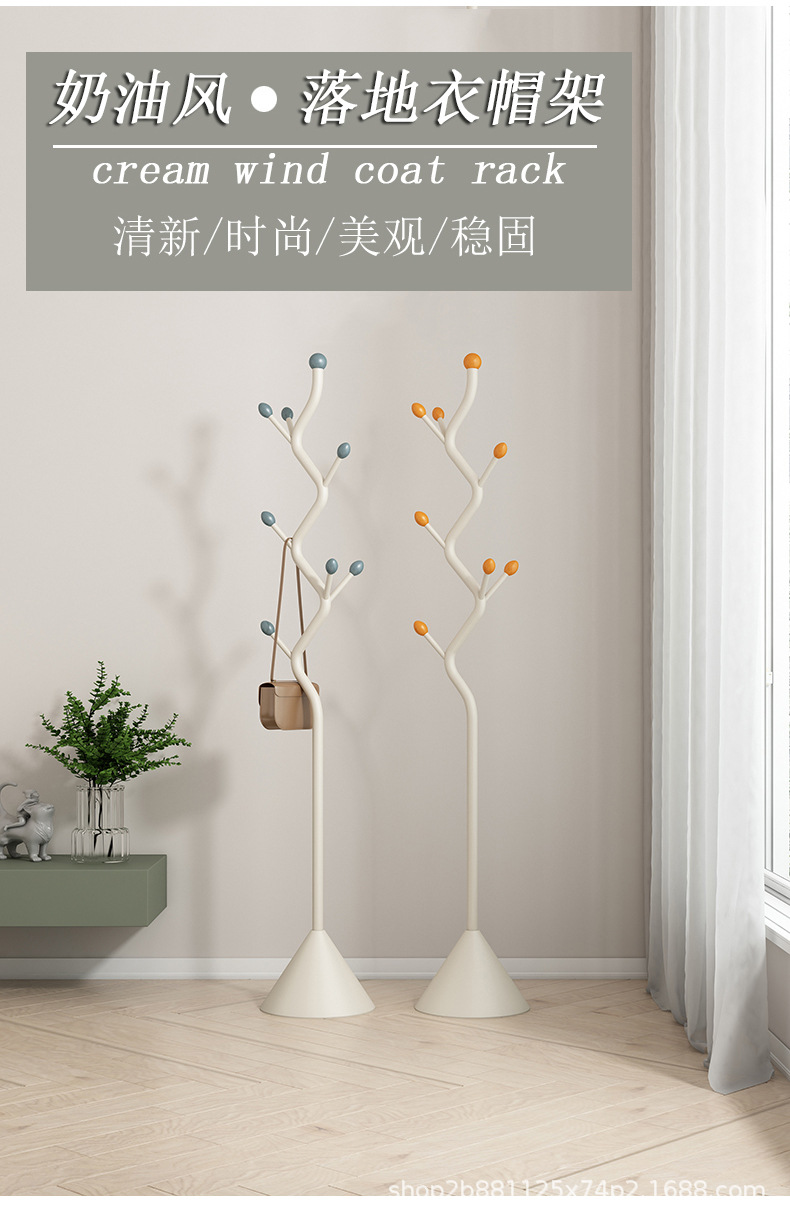 크림 스타일 가정용 거실 옷걸이 바닥 침실 인터넷 인기있는 실내 코트 랙 룸 수직 옷 랙스토어 가기