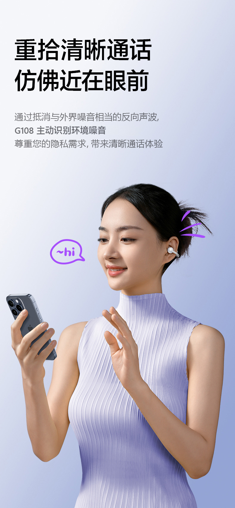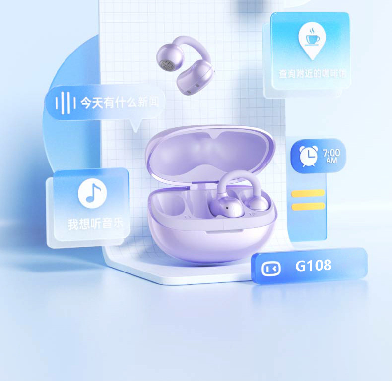 소형 G108 지능형 오픈 블루투스 헤드셋 AI 실시간 번역 공기 전도 무선 스포츠 귀 클립 헤드셋