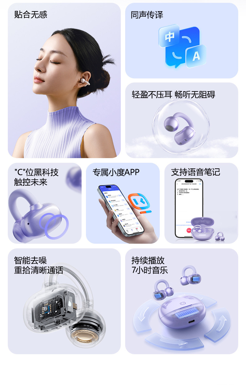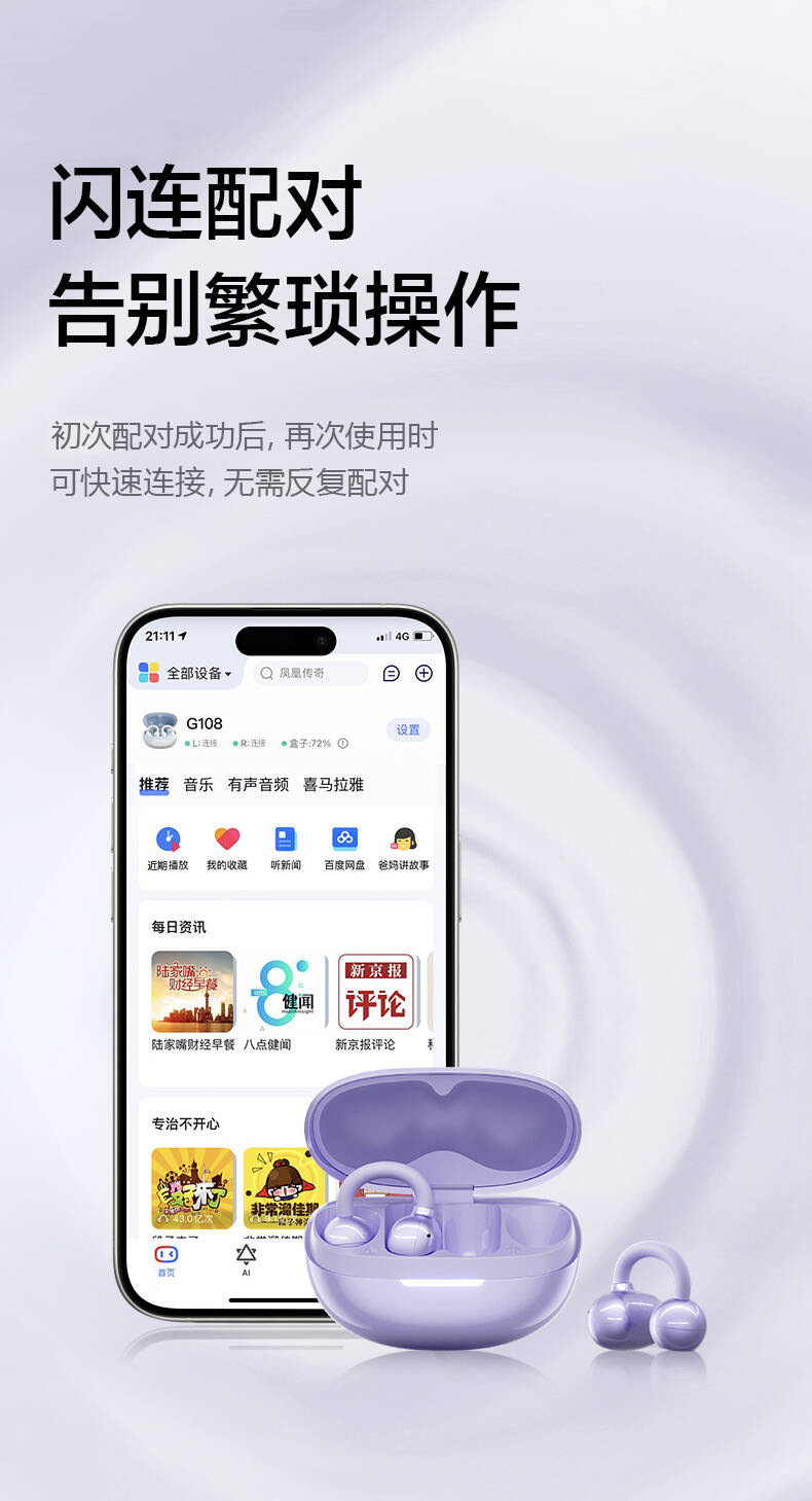 소형 G108 지능형 오픈 블루투스 헤드셋 AI 실시간 번역 공기 전도 무선 스포츠 귀 클립 헤드셋스토어 가기