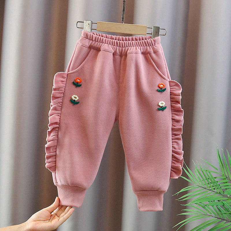 소녀들의 가을과 겨울 바지 양털 달린 바지 2024 새로운 가을 어린이 소녀 발 묶음 바지 어린이 따뜻한 바지스토어 가기