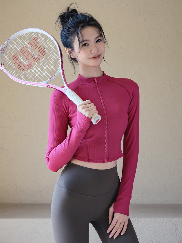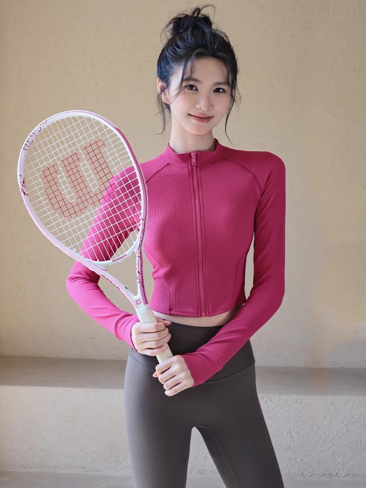 요가 의류 긴팔 여성 가을 및 겨울 새로운 수직 칼라 지퍼 슬림핏 스포츠 재킷 러닝 트레이닝 탑 WT3337스토어 가기