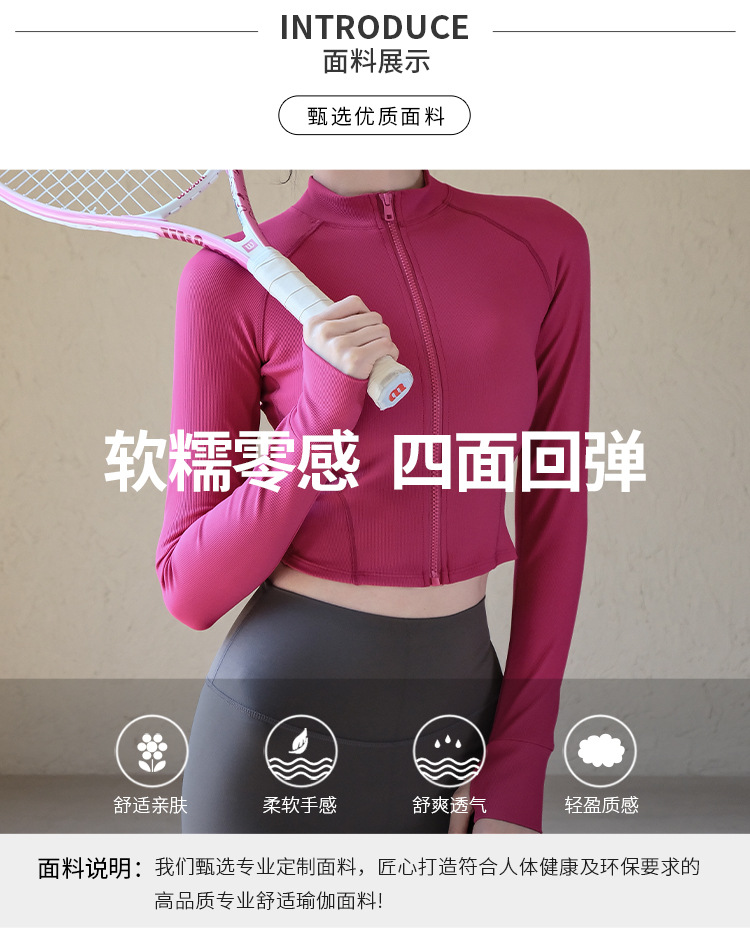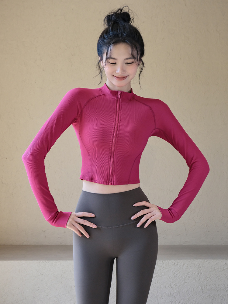 요가 의류 긴팔 여성 가을 및 겨울 새로운 수직 칼라 지퍼 슬림핏 스포츠 재킷 러닝 트레이닝 탑 WT3337