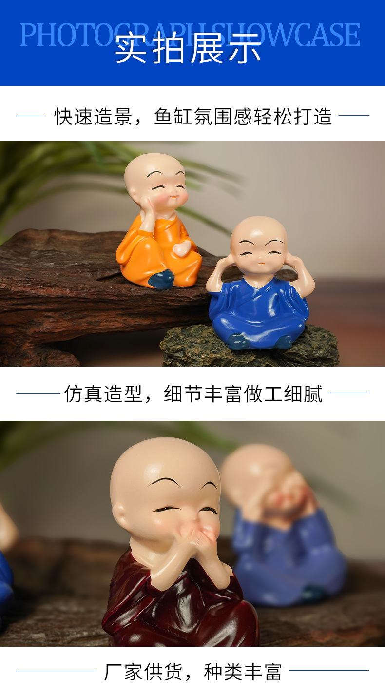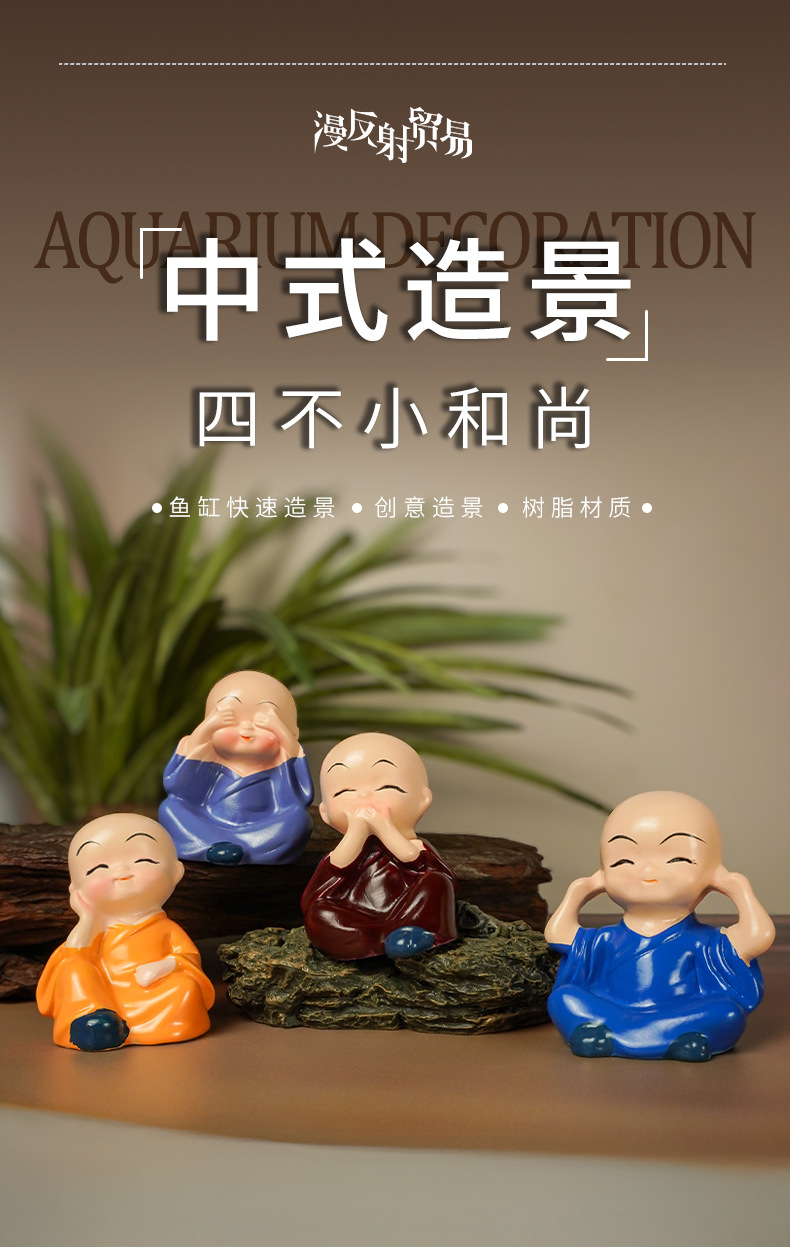 4 개의 작은 몽크 수족관 장식 물고기 탱크 풍경 장식품 물고기 문화 세트 심리적 샌드테이블 게임 고고 학적 실명스토어 가기