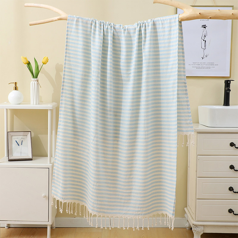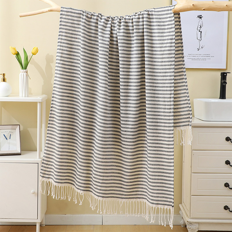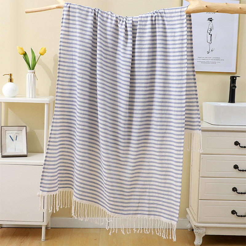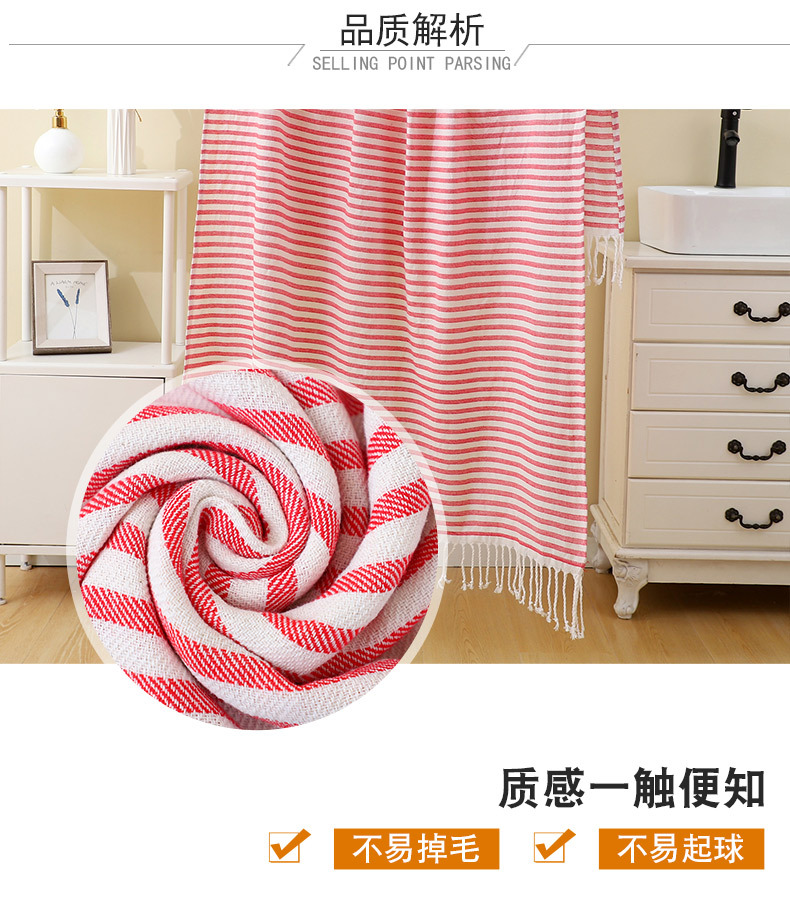 국경 간 유럽과 미국의 핀 스트라이프 터키 해변 목욕 타올 100*180 해변 놀이 랩 술 비치 타월