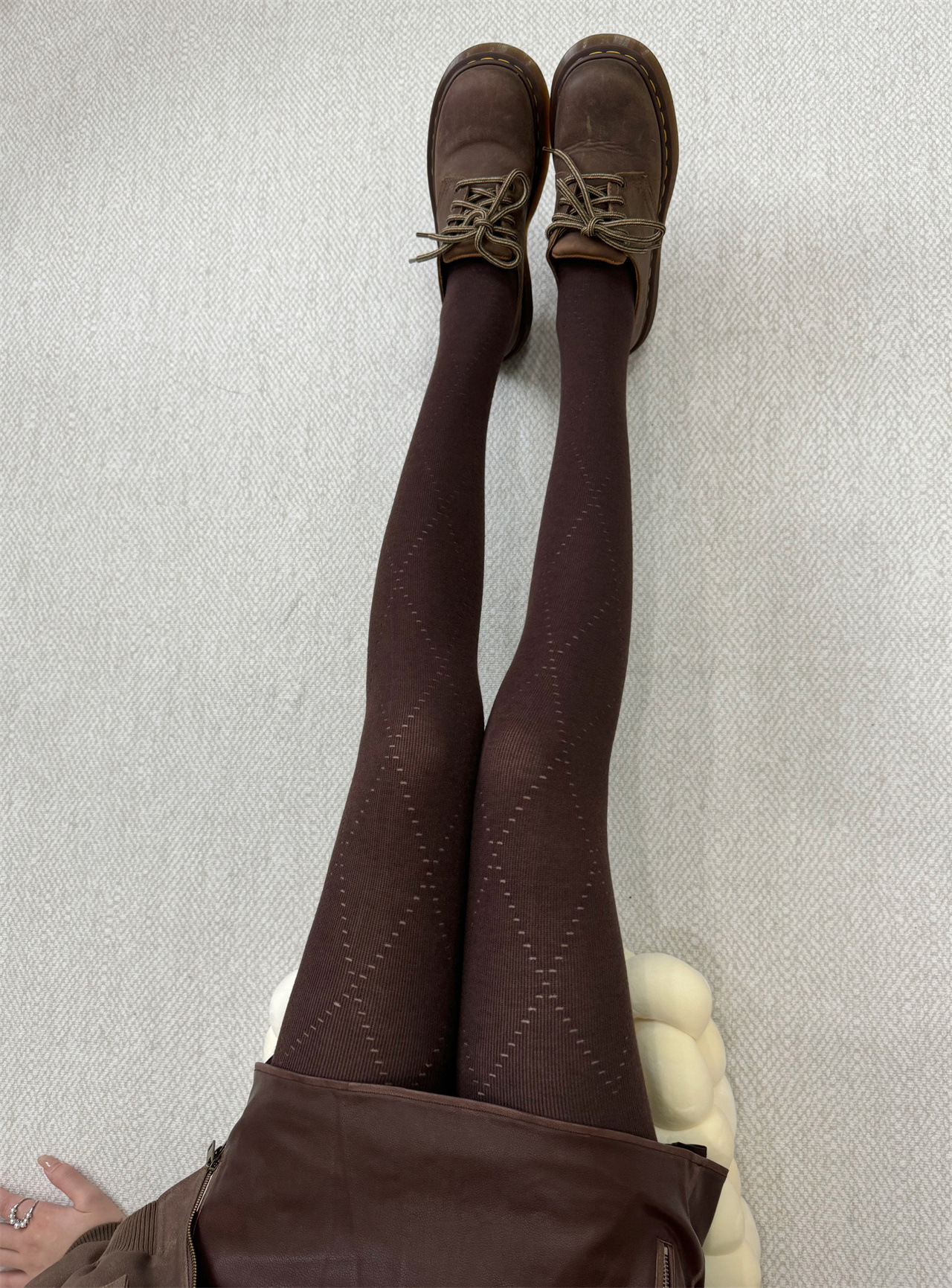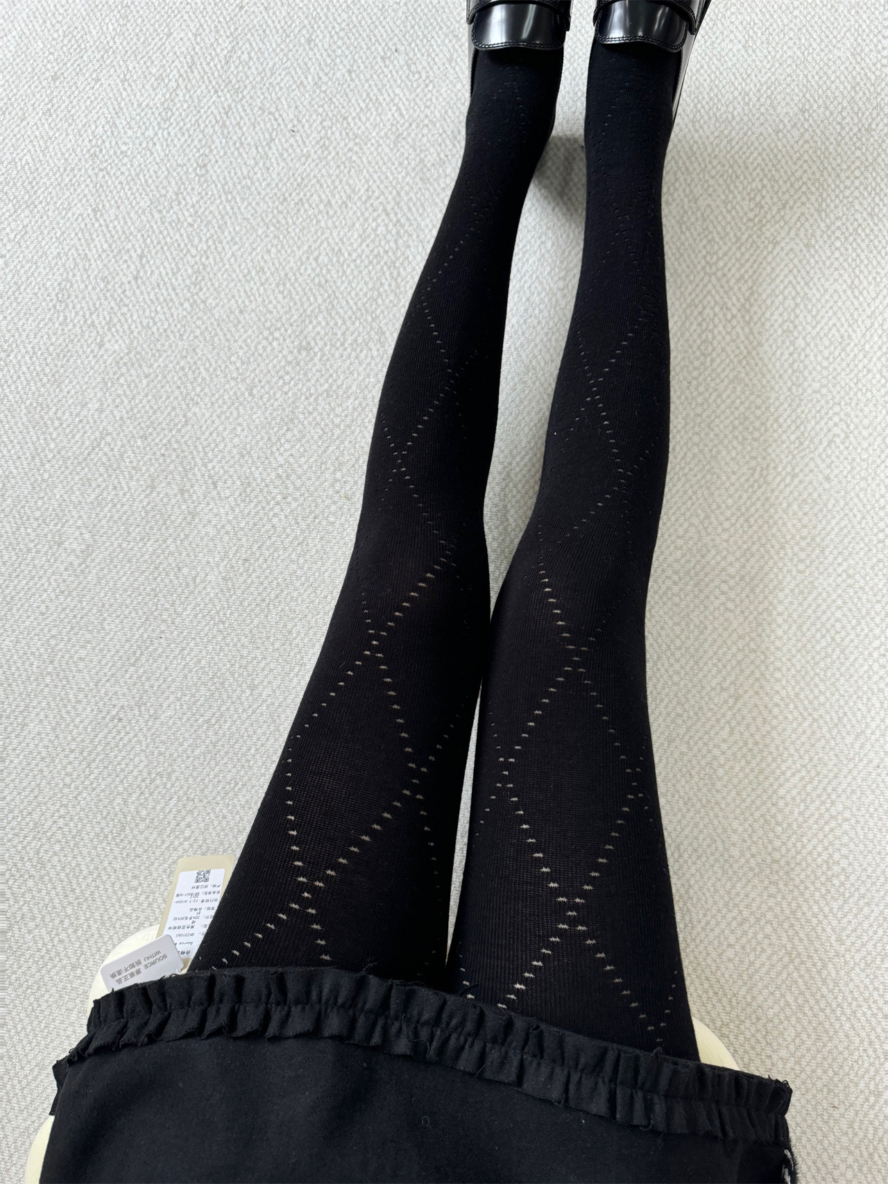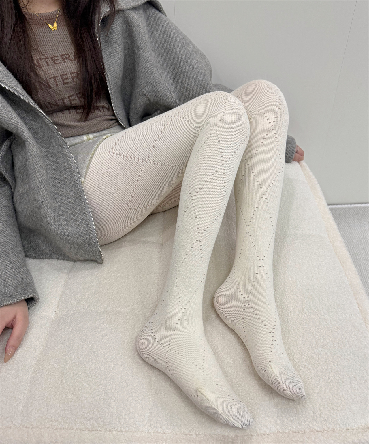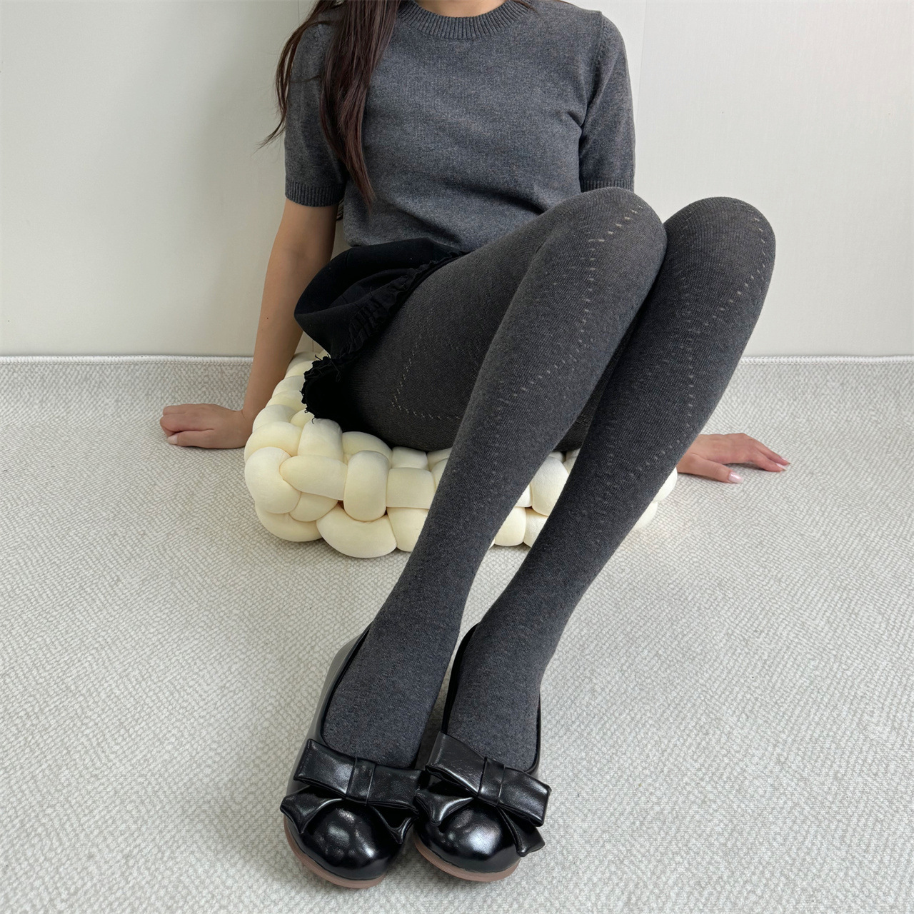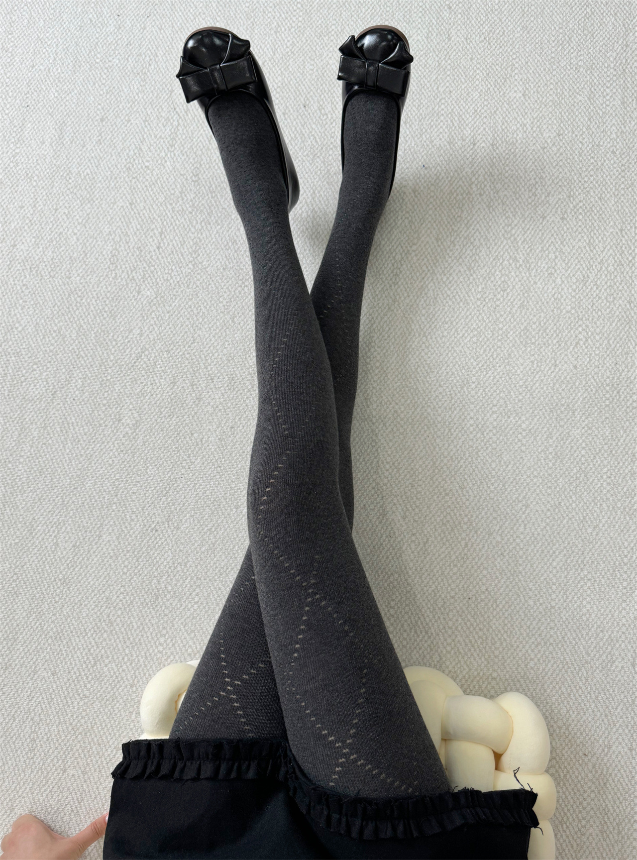 가을과 겨울 회색 코튼 중공 마름모 탄성 얇은 따뜻한 섹시한 다리 양말 바지 스타킹 여성
