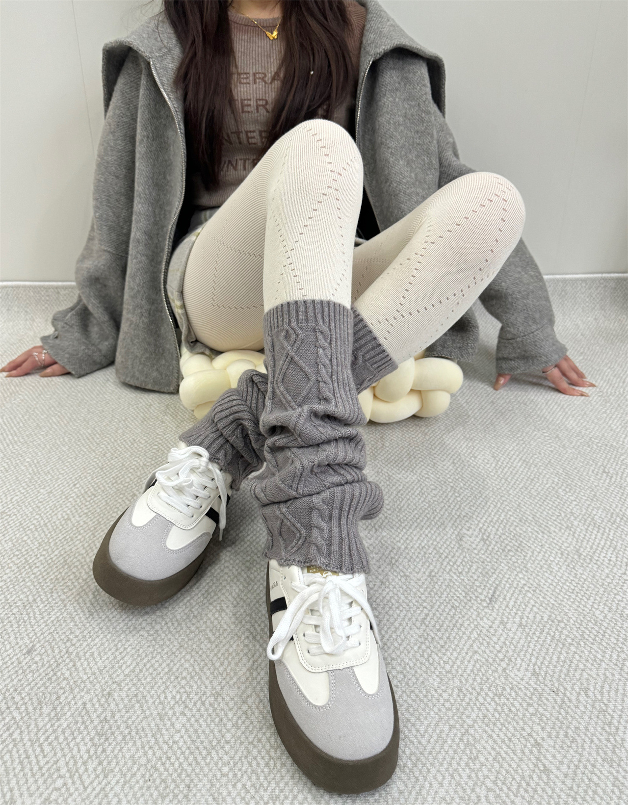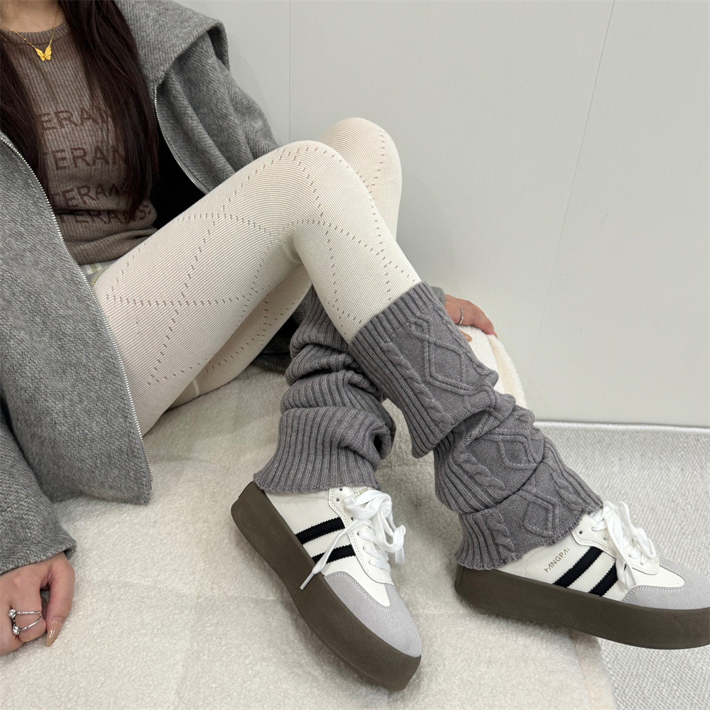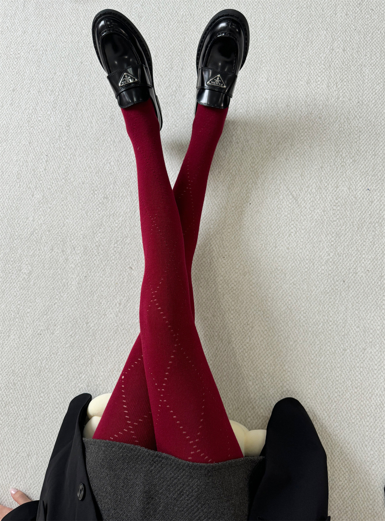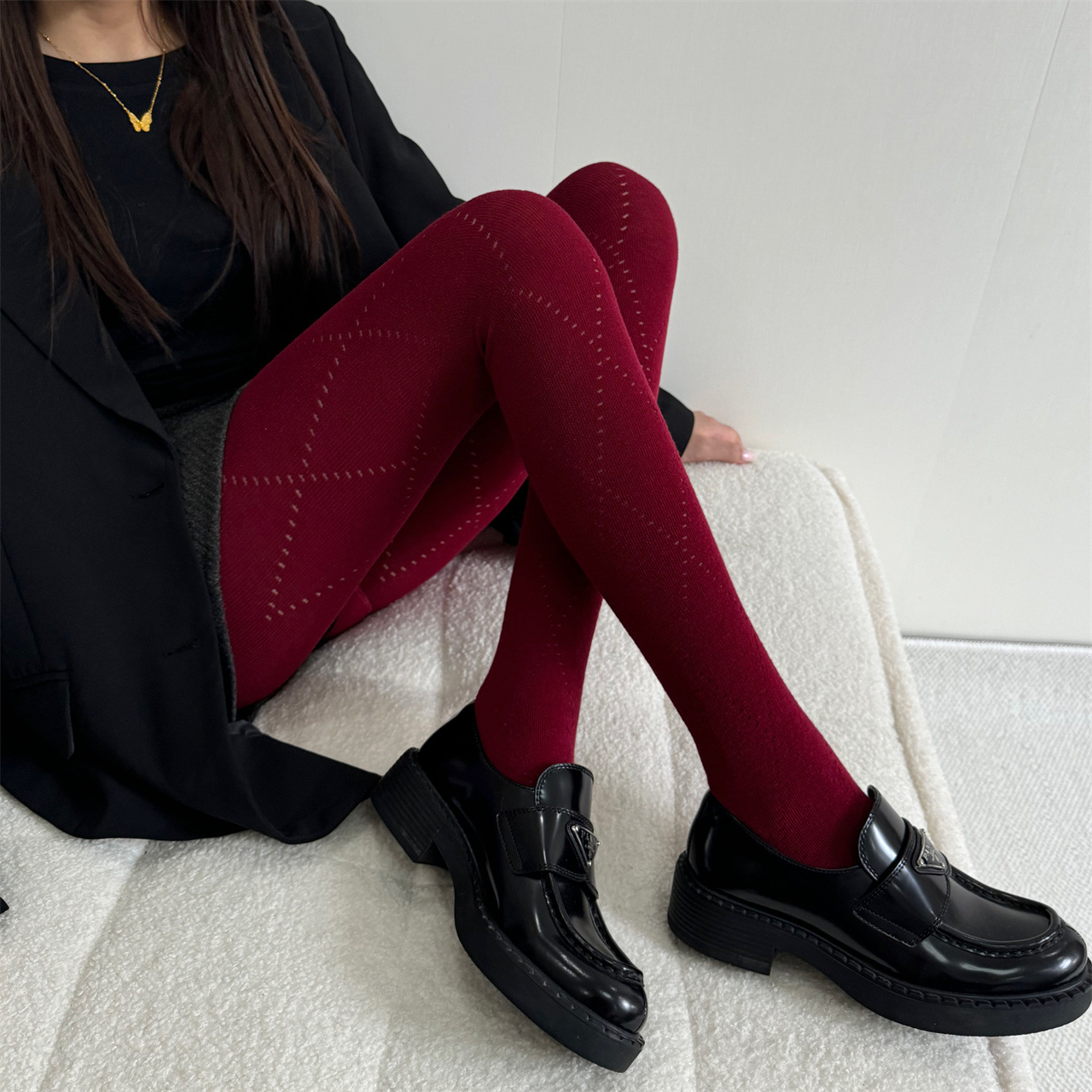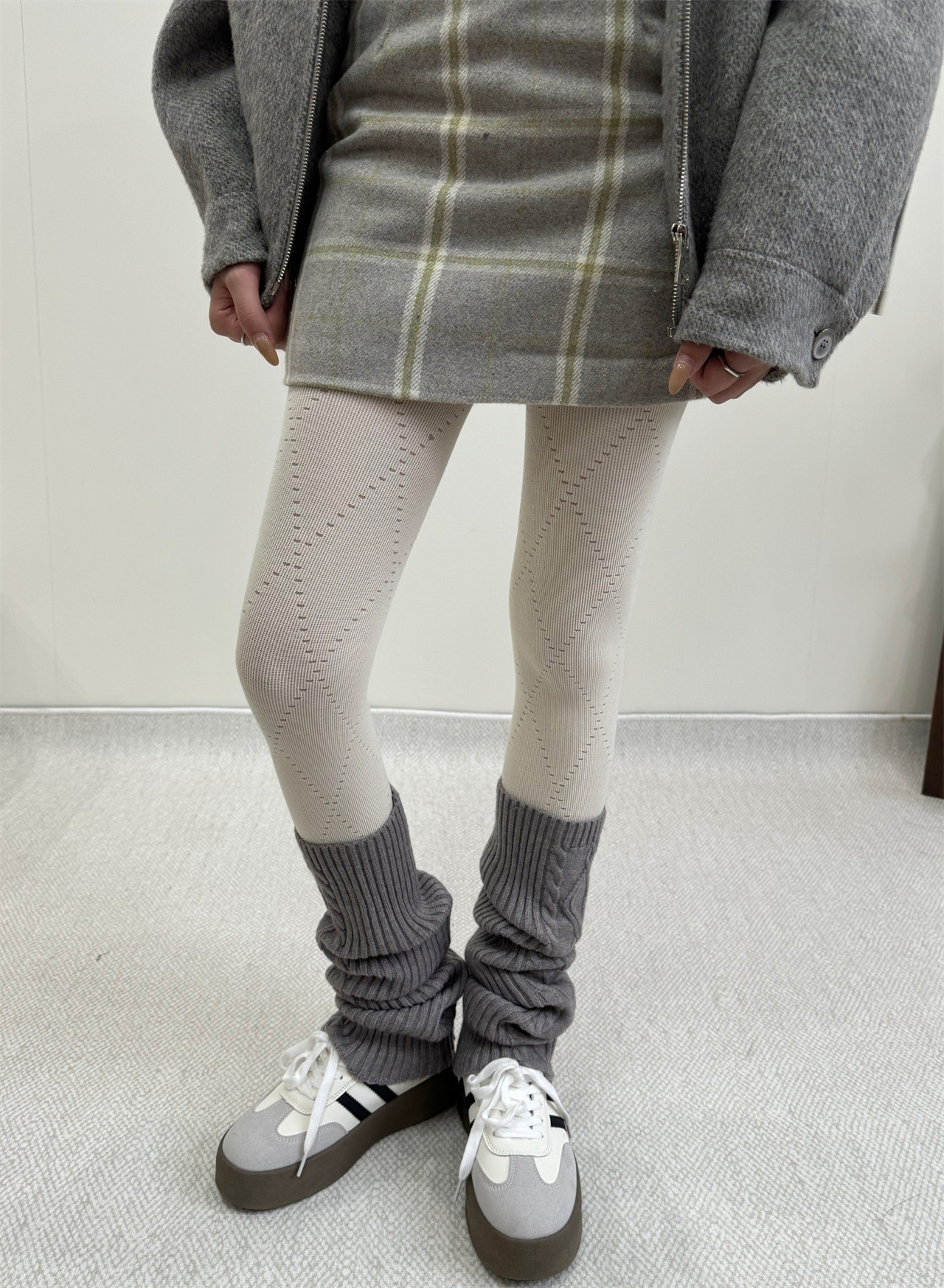 가을과 겨울 회색 코튼 중공 마름모 탄성 얇은 따뜻한 섹시한 다리 양말 바지 스타킹 여성