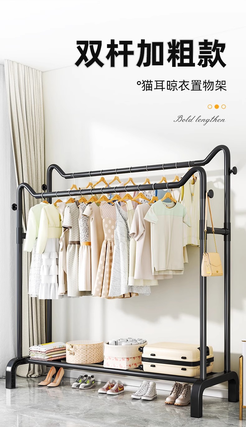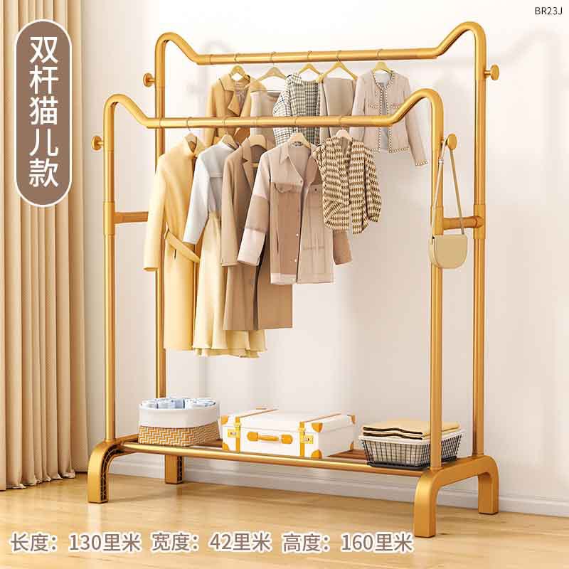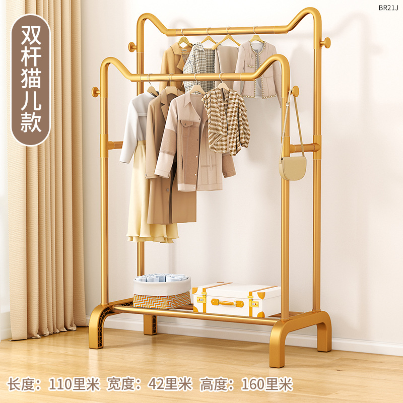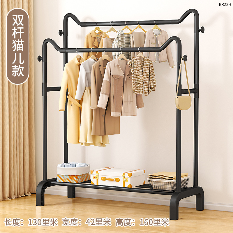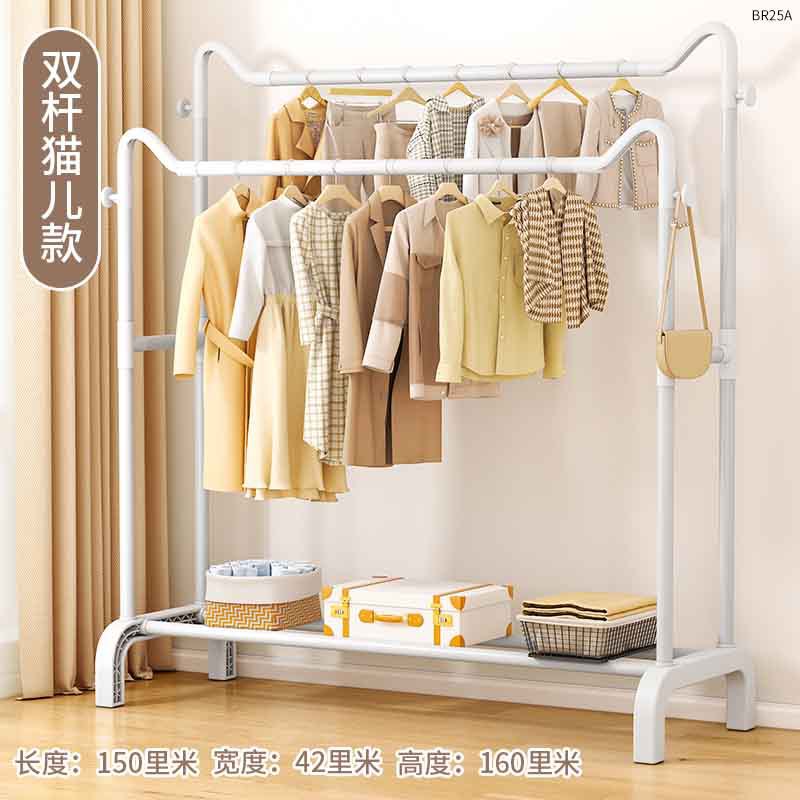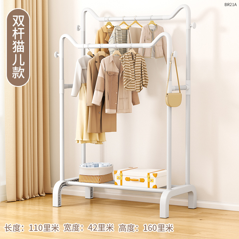 간단한 옷 옷걸이 바닥 서 두 장대 가정용 의류 보관 실내 교수형 가방 보관 랙 건조 랙 발코니 건조 선반