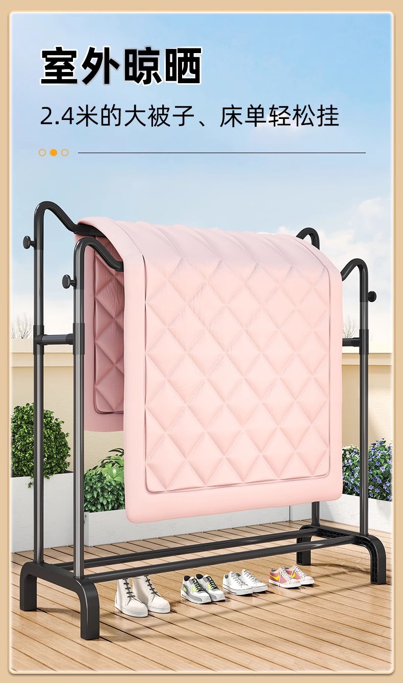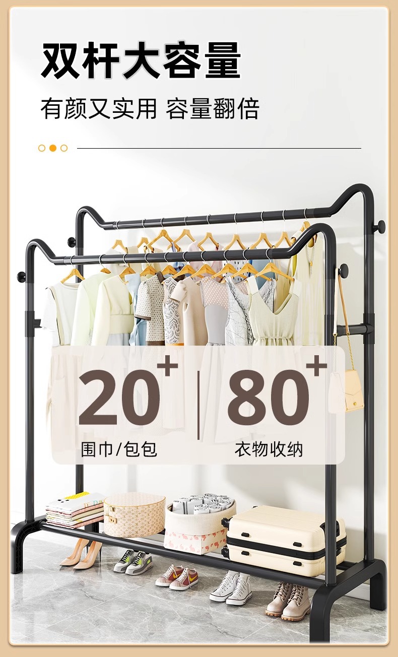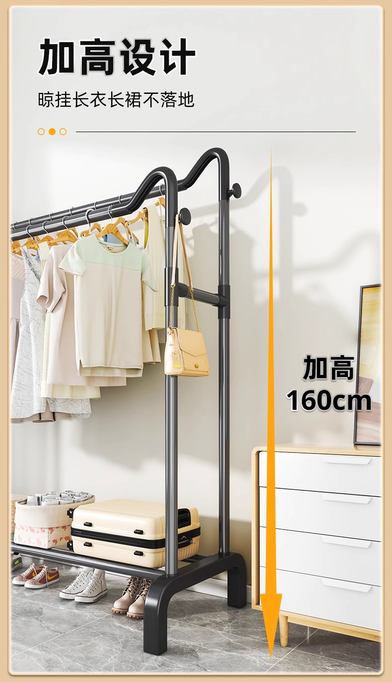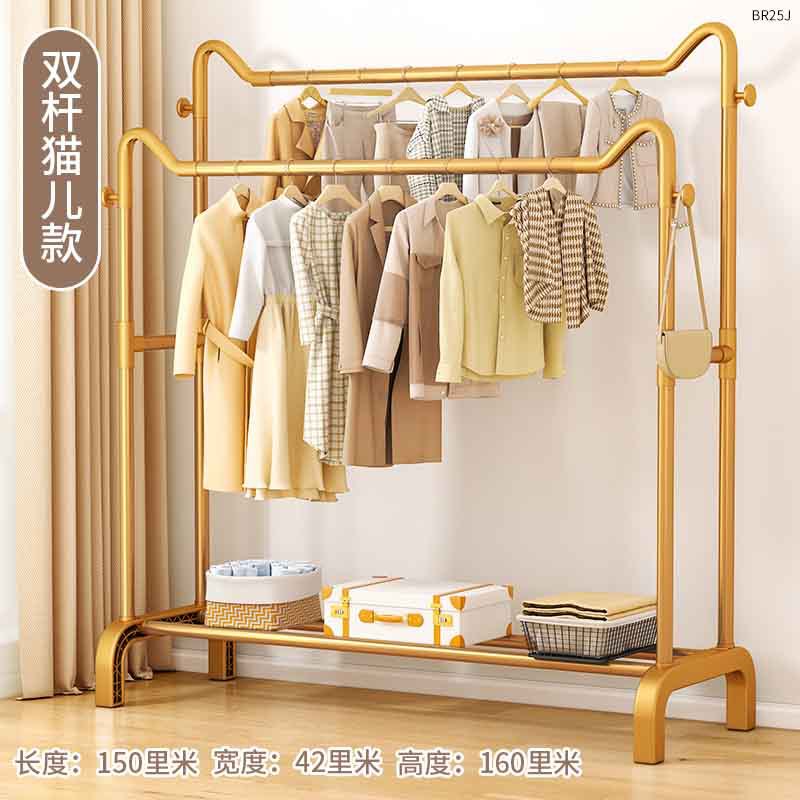 간단한 옷 옷걸이 바닥 서 두 장대 가정용 의류 보관 실내 교수형 가방 보관 랙 건조 랙 발코니 건조 선반