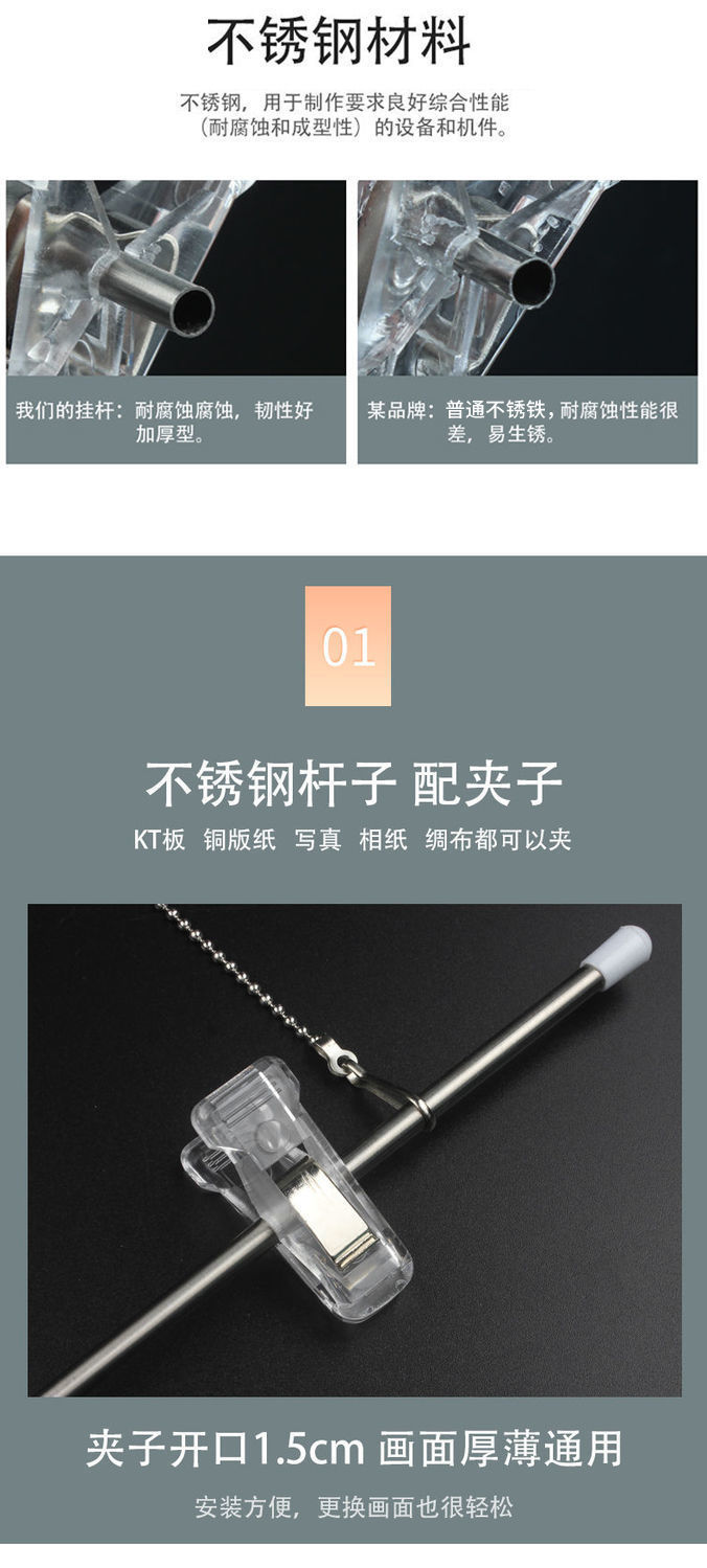 슈퍼마켓 깃발 매달린 극 스테인레스 스틸 KT 보드 광고 클립 60cm 포스터 폴 80cm 후크 알루미늄 합금 매달려 Jiatai