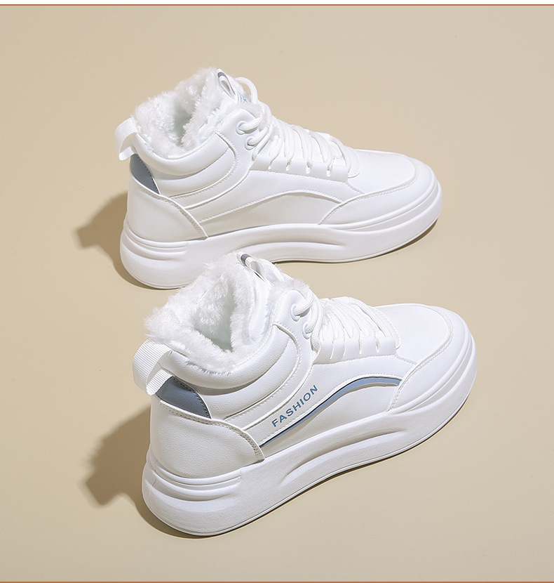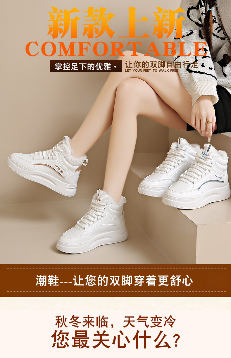 Ins 기모 하이탑 화이트 슈즈 여성 2024 겨울 한국식 올매치 학생 보드 슈즈 따뜻한 캐주얼 슈즈 여성용 SH889