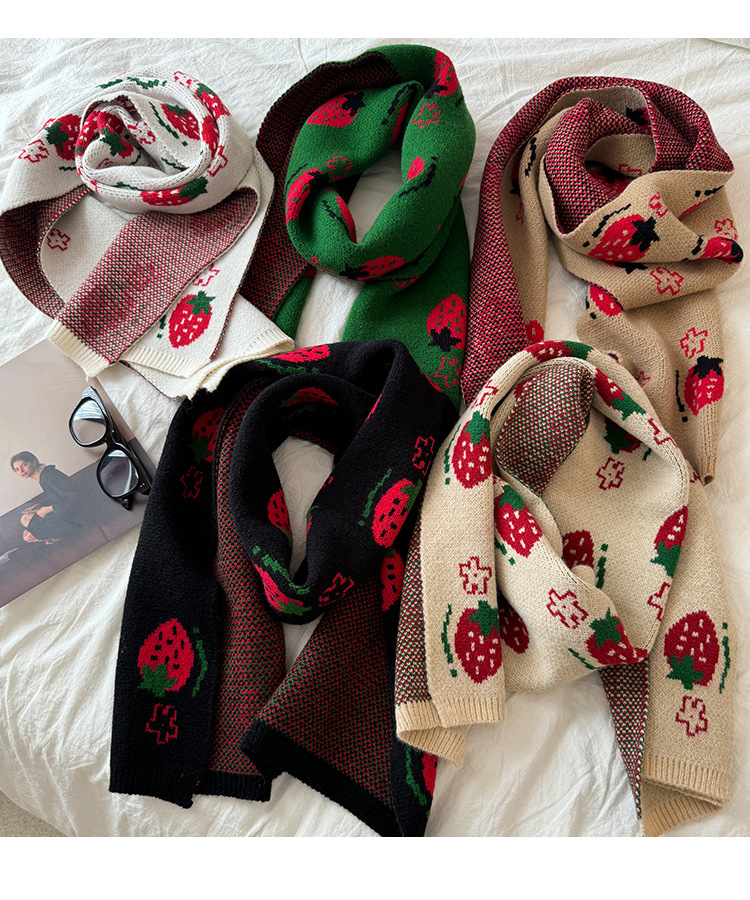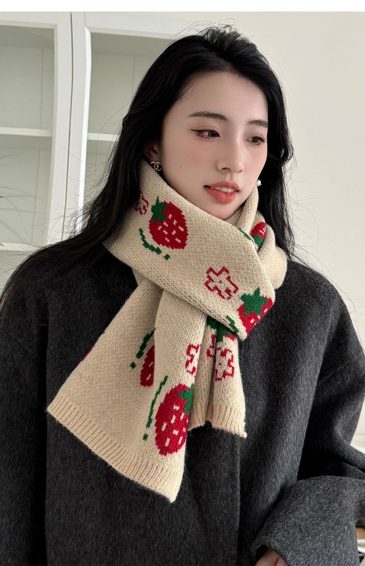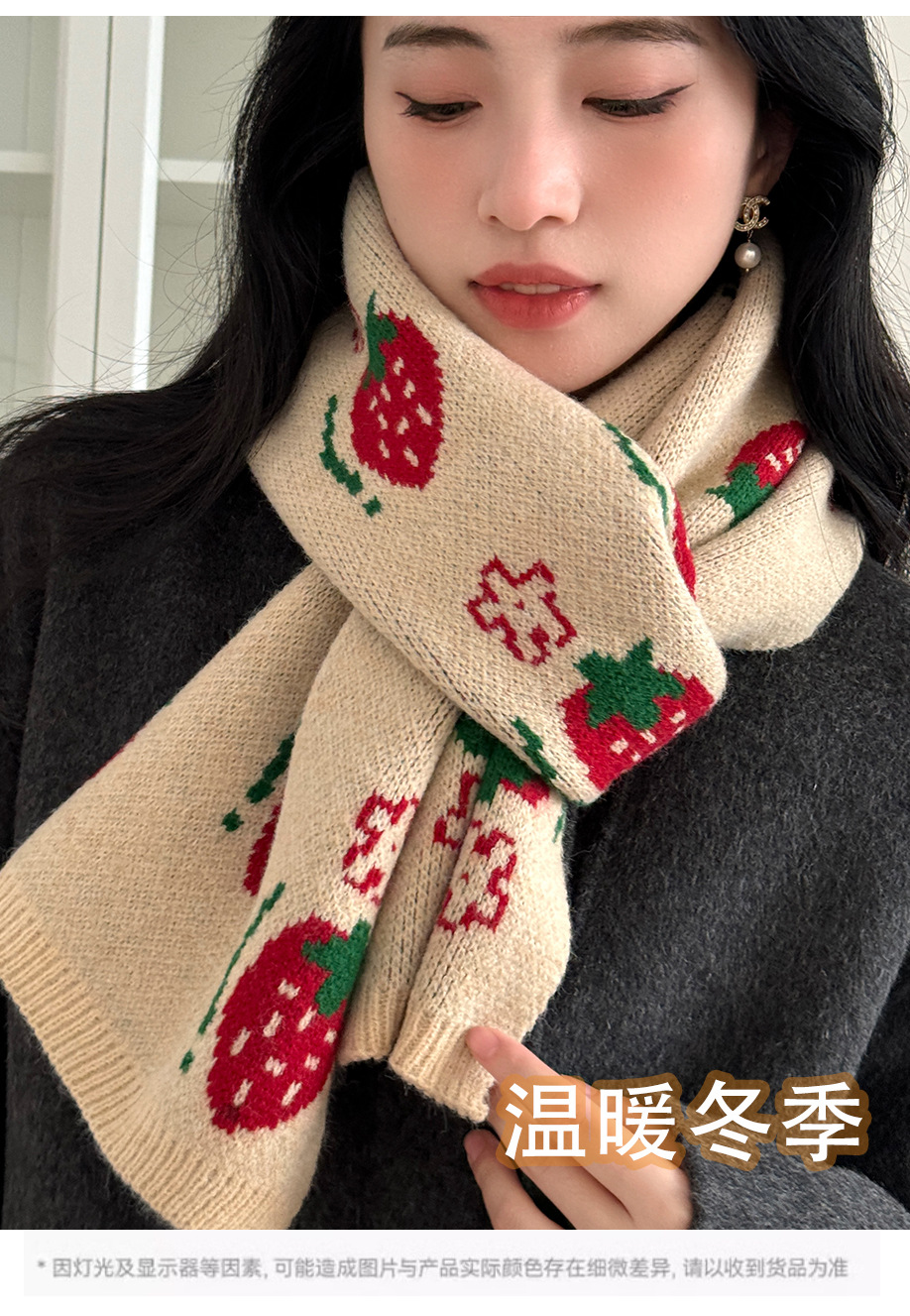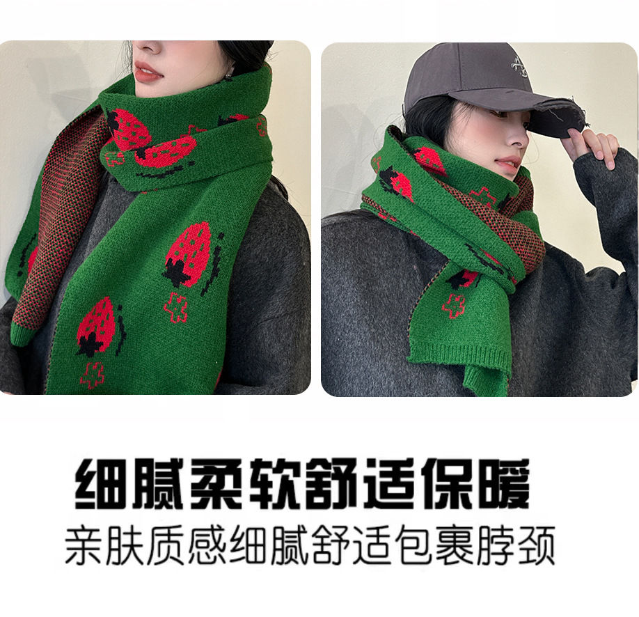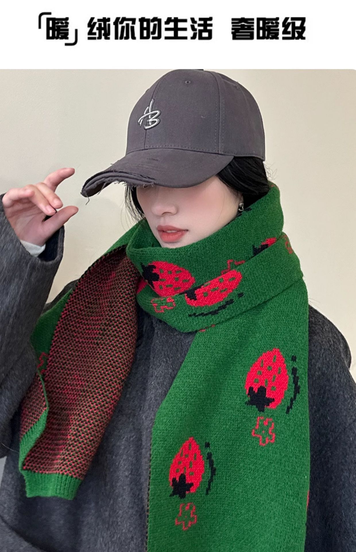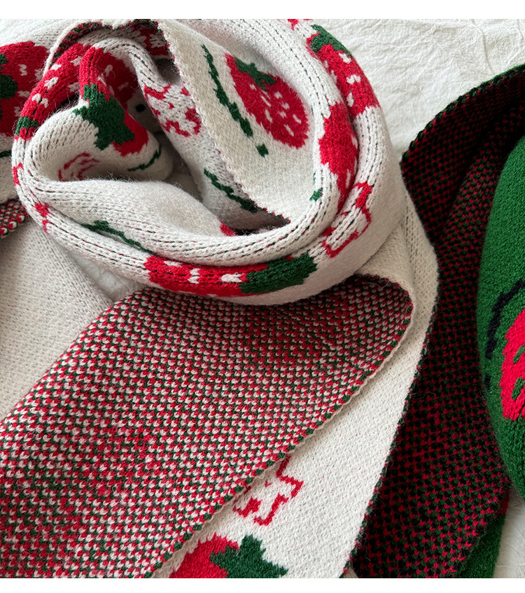 새해 그린 딸기 크리스마스 스카프 여자 겨울 분위기 한국식 올매치 목도리 따뜻한 긴 니트 스카프