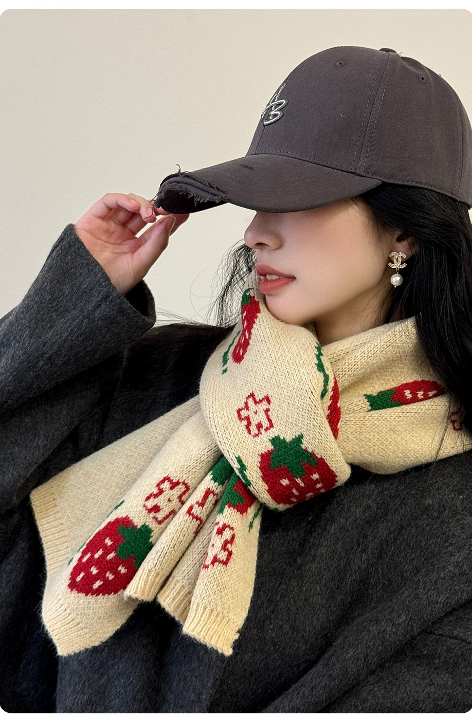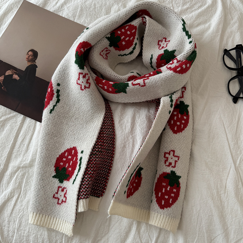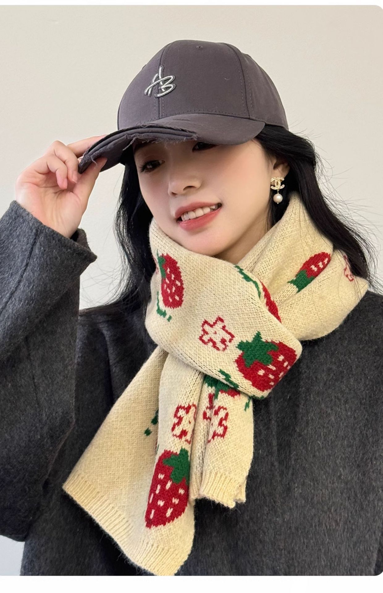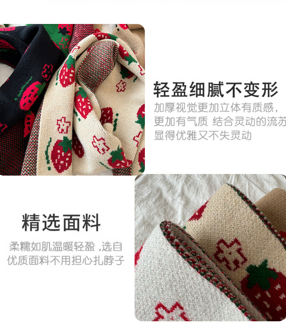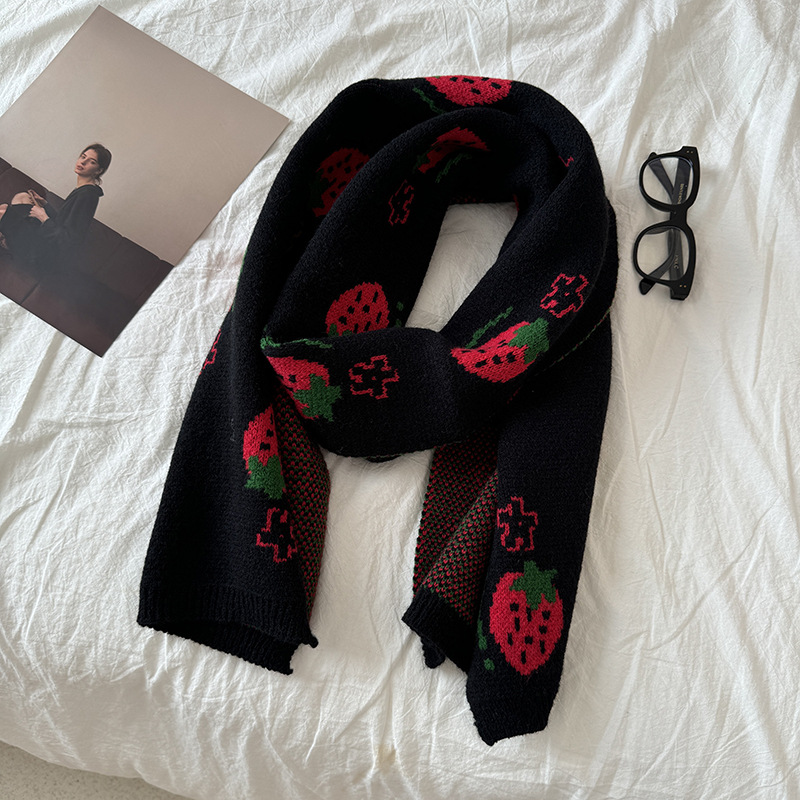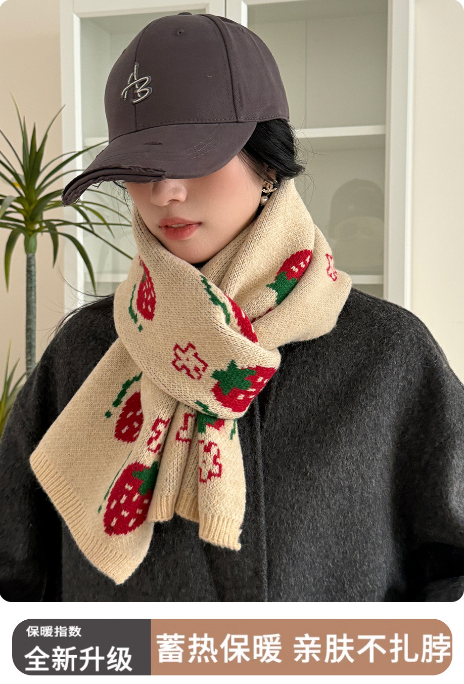 새해 그린 딸기 크리스마스 스카프 여자 겨울 분위기 한국식 올매치 목도리 따뜻한 긴 니트 스카프