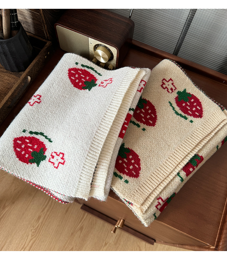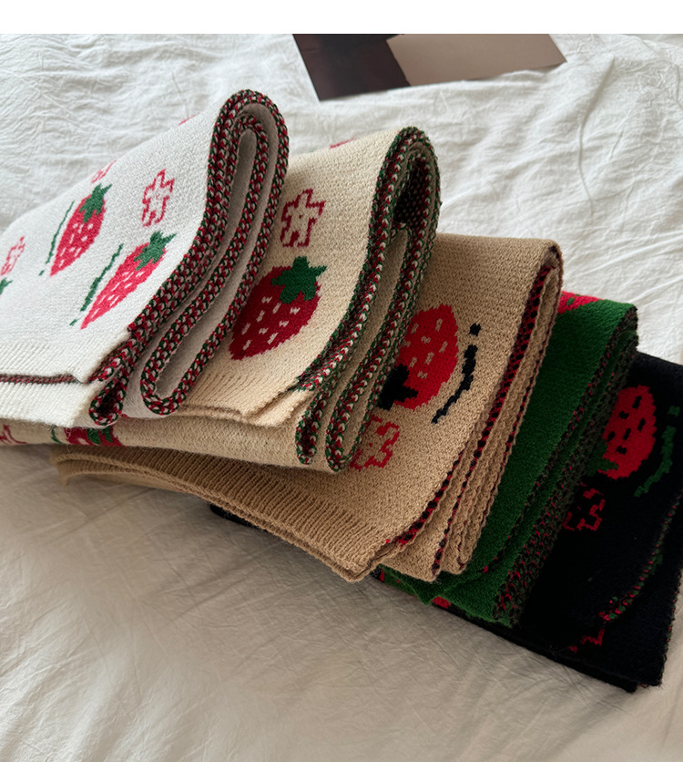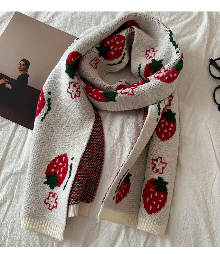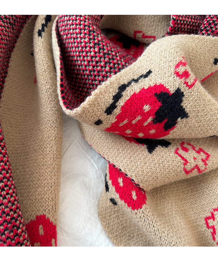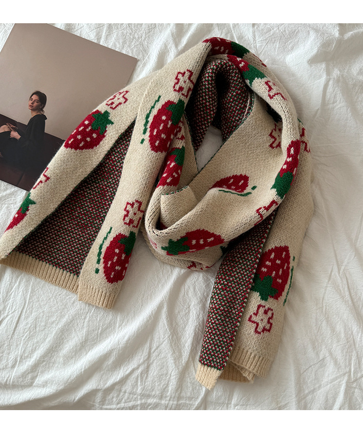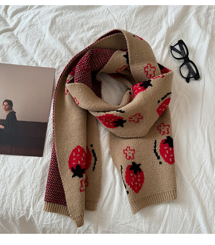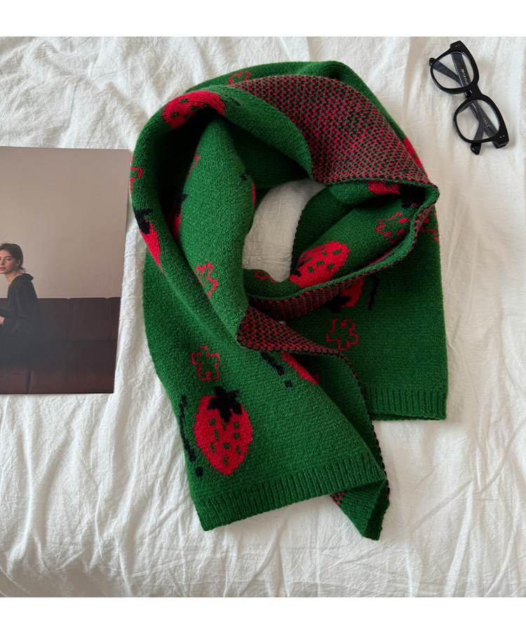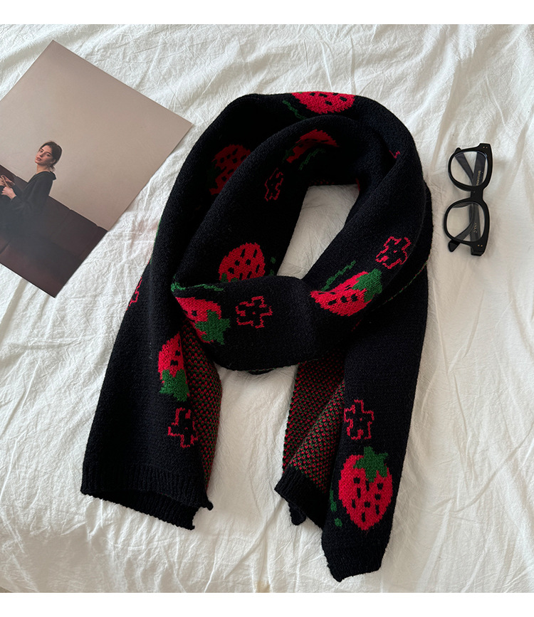 새해 그린 딸기 크리스마스 스카프 여자 겨울 분위기 한국식 올매치 목도리 따뜻한 긴 니트 스카프