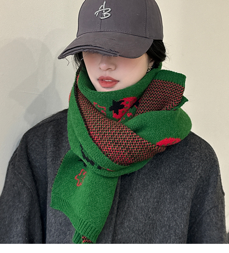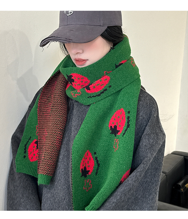 새해 그린 딸기 크리스마스 스카프 여자 겨울 분위기 한국식 올매치 목도리 따뜻한 긴 니트 스카프스토어 가기