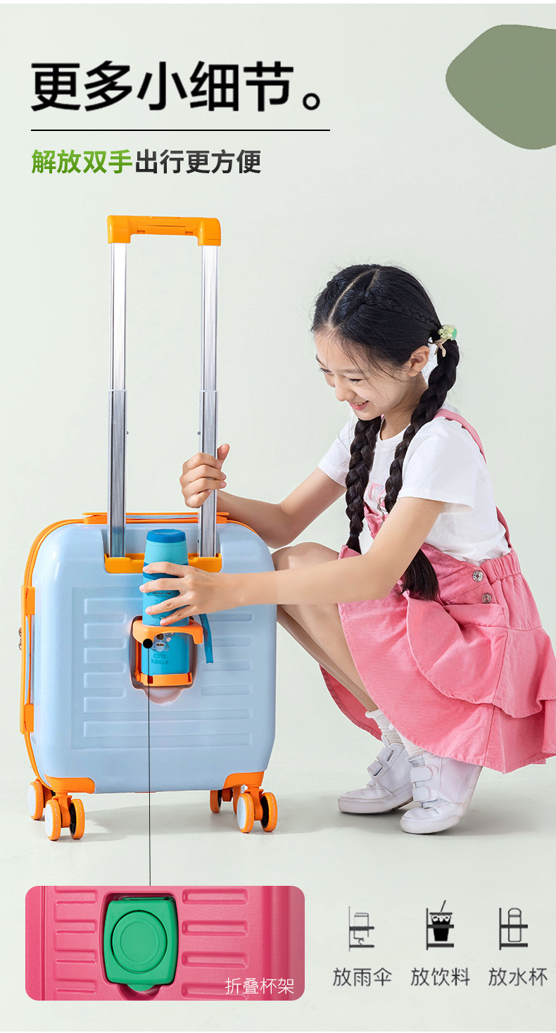 컵 홀더가있는 새로운 18 인치 어린이 수하물 대용량 범용 휠 가방은 탑승 트롤리 케이스 도매로 앉을 수 있습니다.스토어 가기