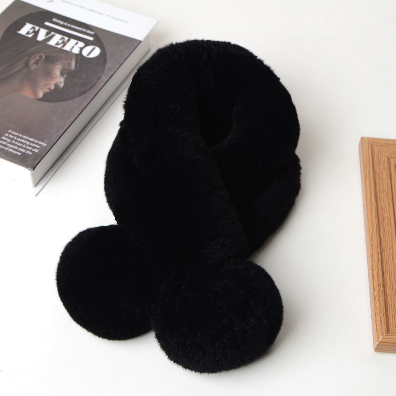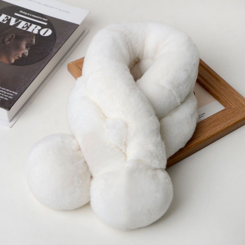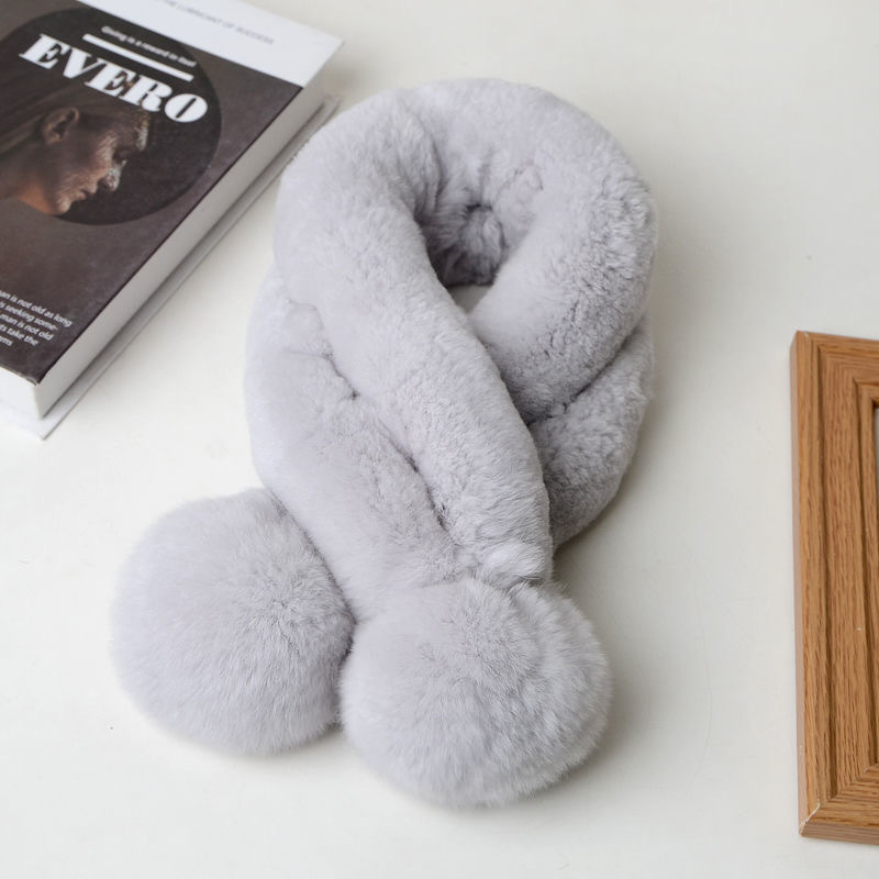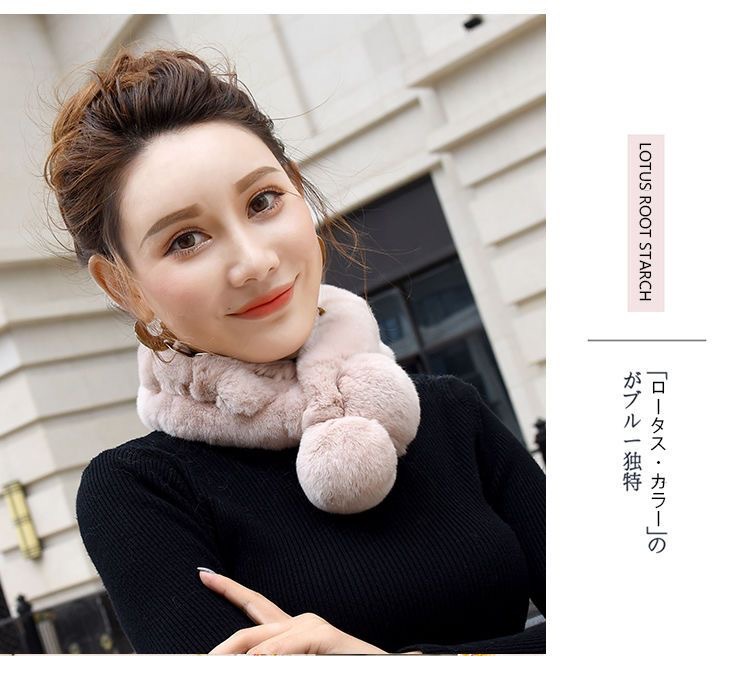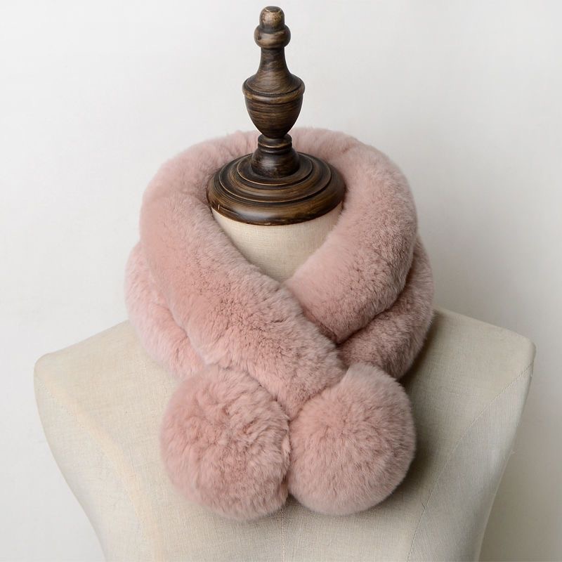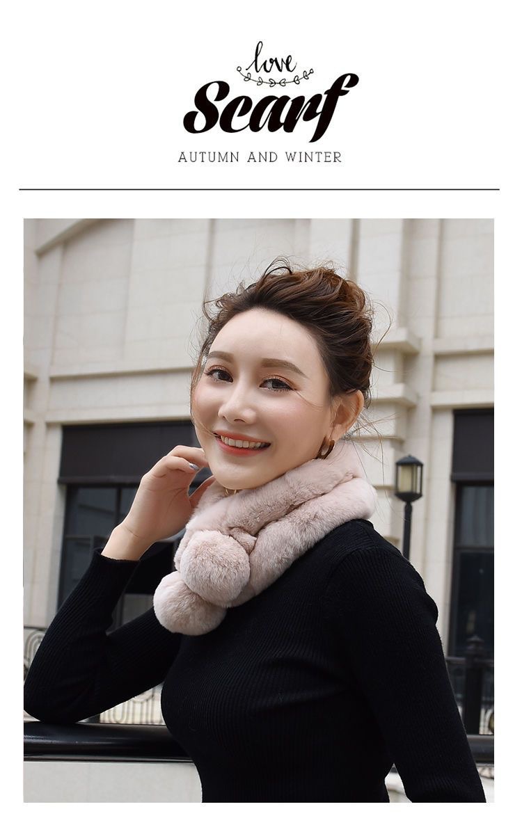 렉스 토끼 모피 스카프 겨울 따뜻한 숙녀 짧은 단색 가죽 잔디 더블 튜브 스카프 볼 모피 스카프 세트 도매스토어 가기