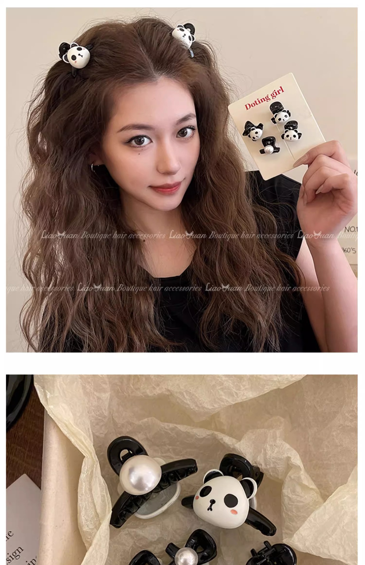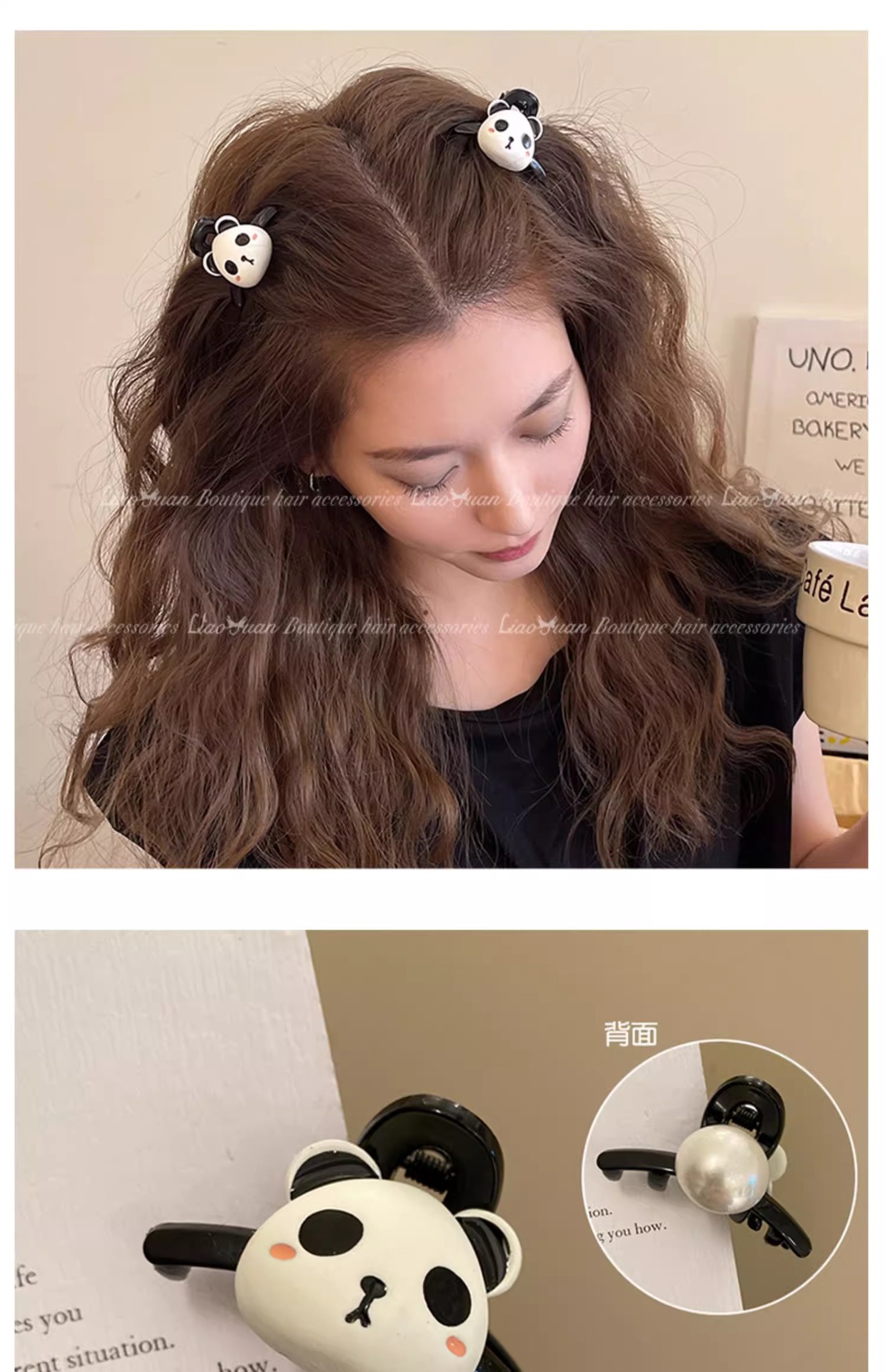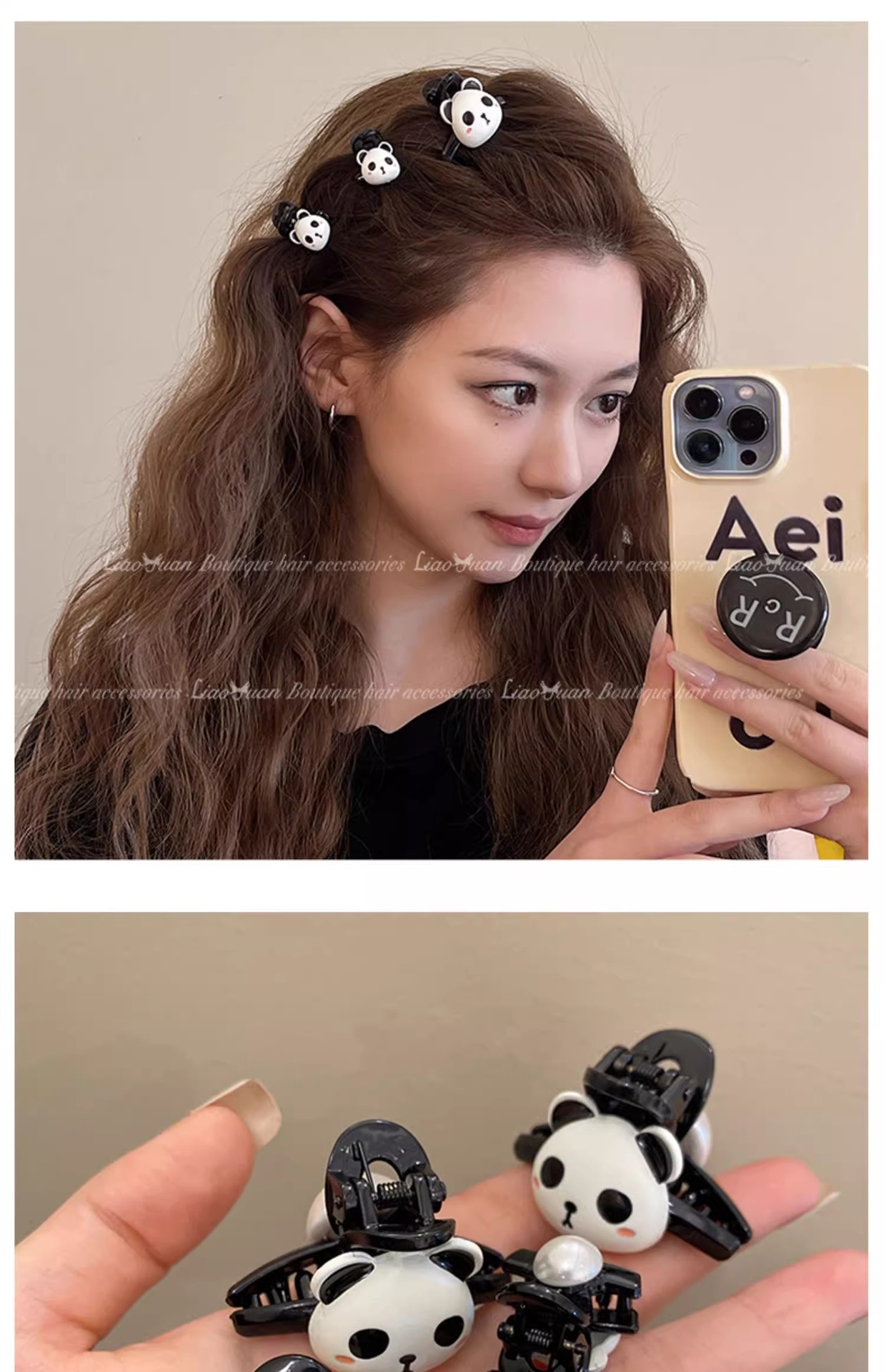 팬더 포옹 ~ 귀여운 공주 머리 작은 잡아 클립 2024 새로운 하이 엔드 헤어핀 헤드웨어 소녀 사이드 뱅 클립스토어 가기