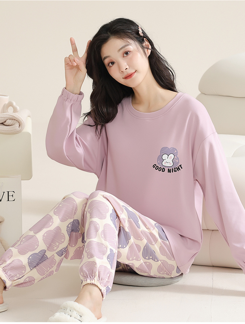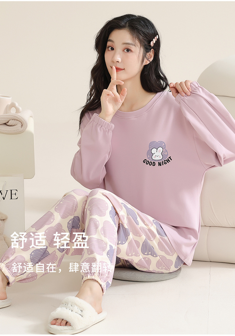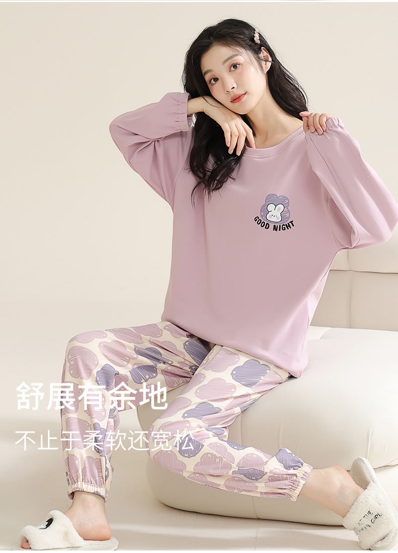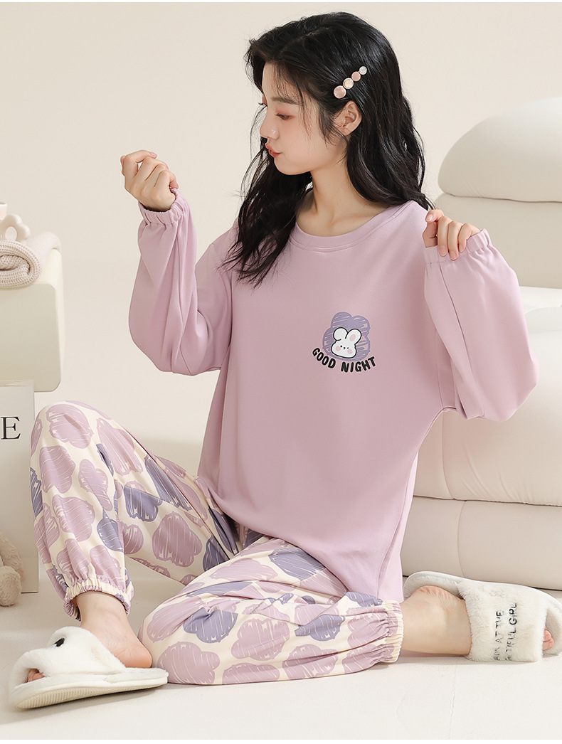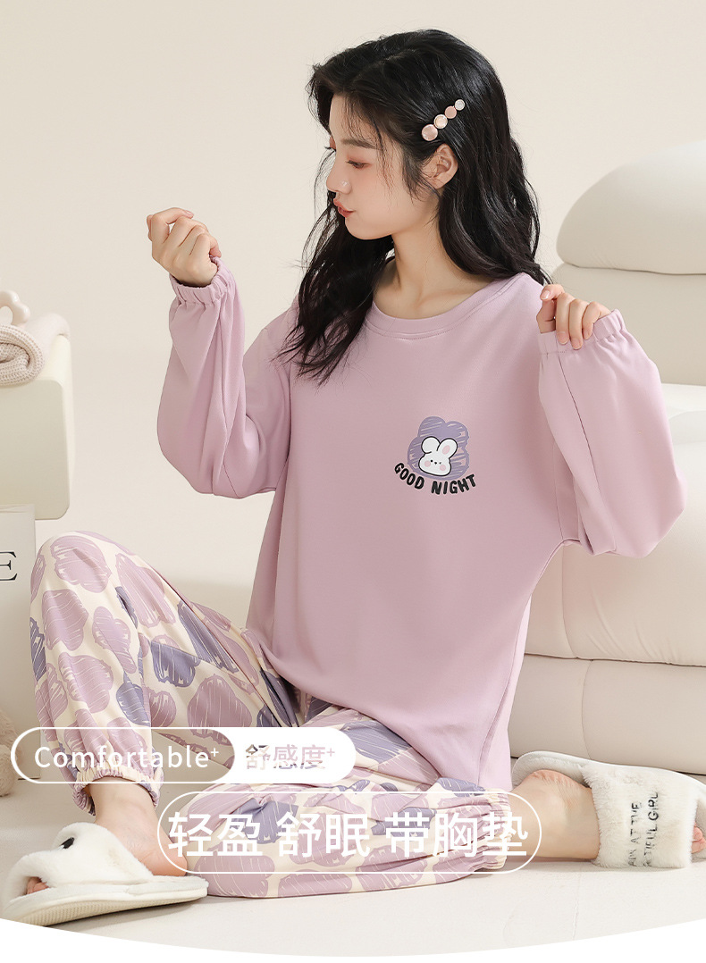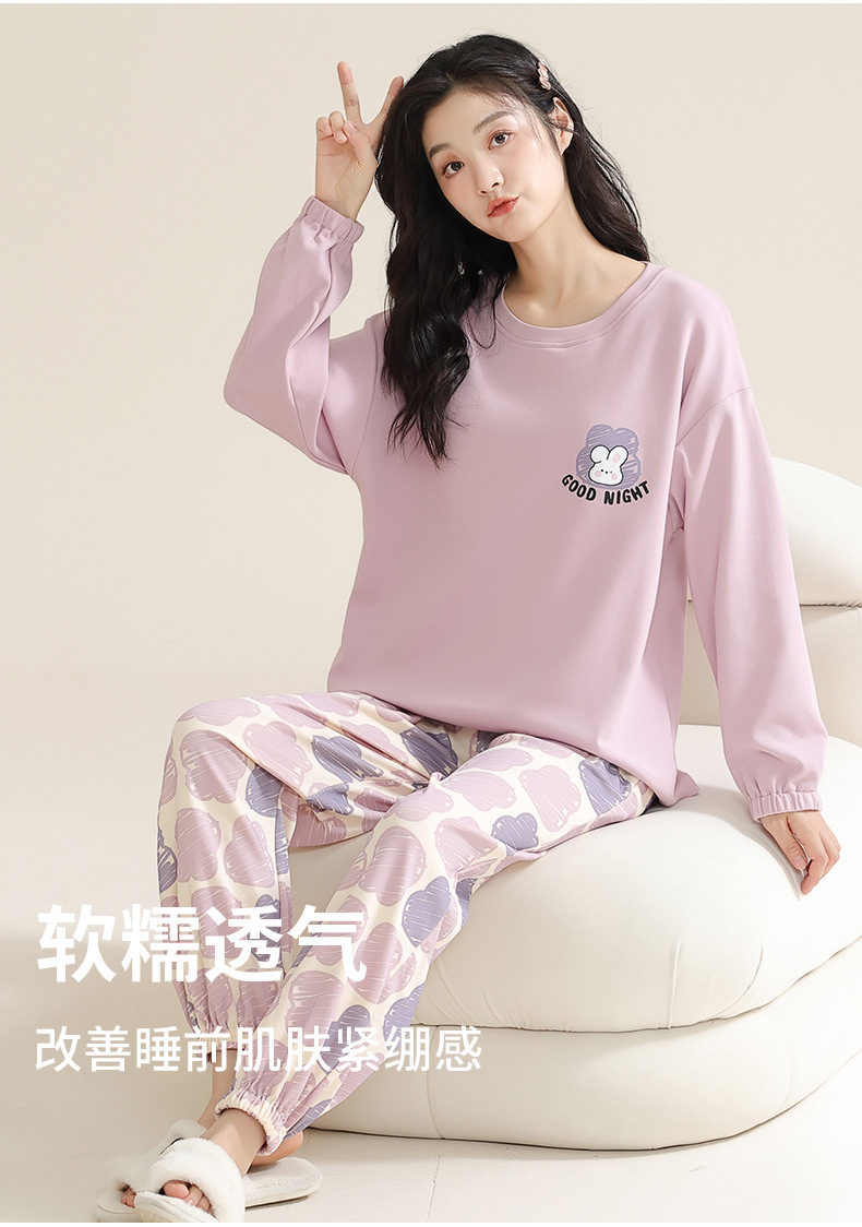 잠옷 여성의 봄과 가을 긴 소매 바지 얇은 캐주얼 겉옷 홈 의류 2024 새로운 세트스토어 가기