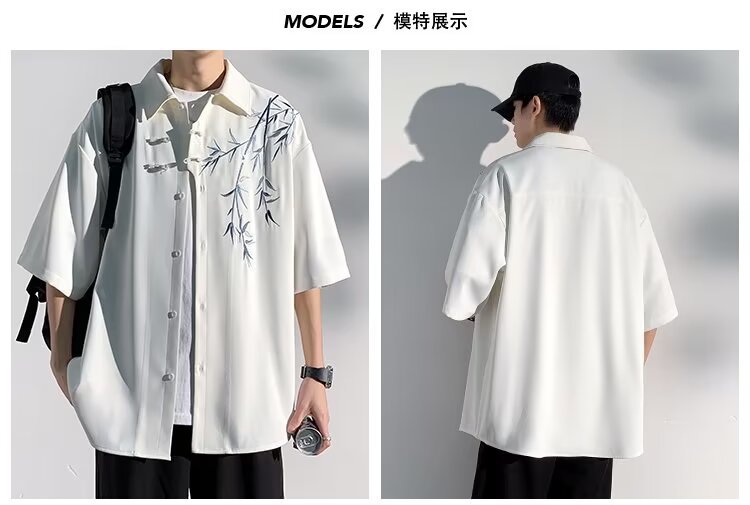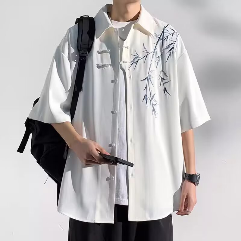 새로운 중국 스타일 라이트 내셔널 스타일 셔츠 소년 반팔 2024 여름 패션 브랜드 디자인 버클이 달린 고급 반소매 셔츠스토어 가기