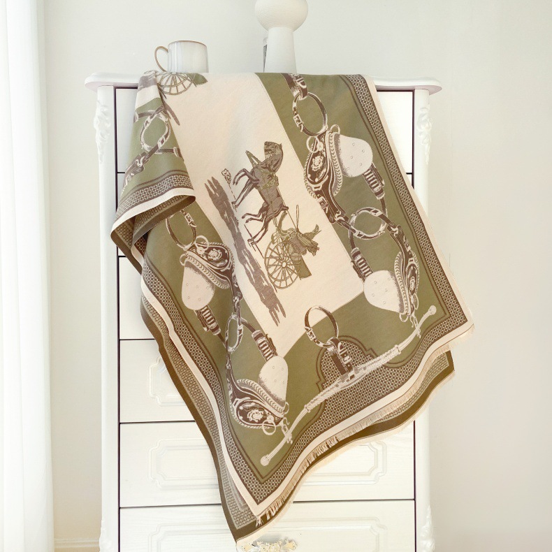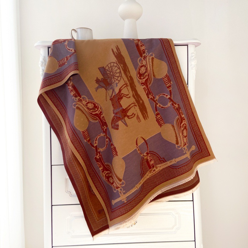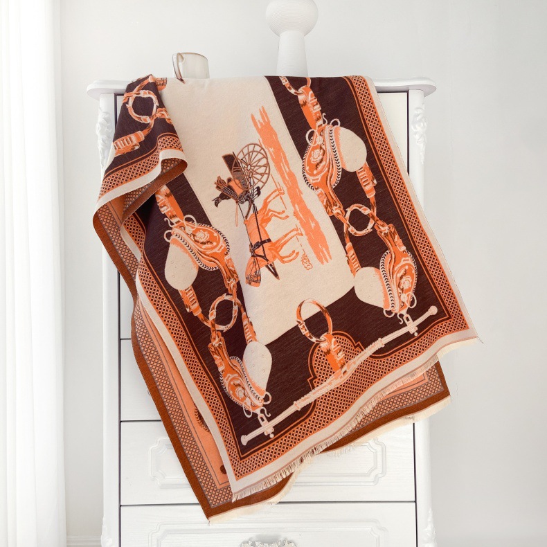 文艺西域风提花羊绒围巾新款时尚秋冬长巾围巾女士高级感御寒披肩