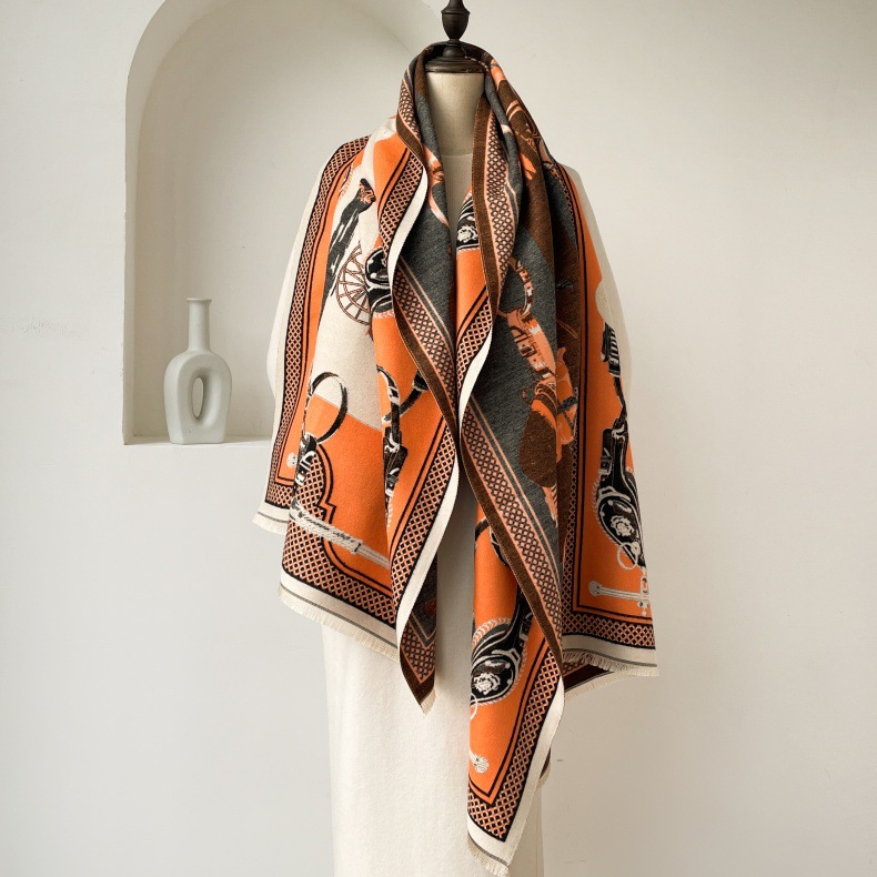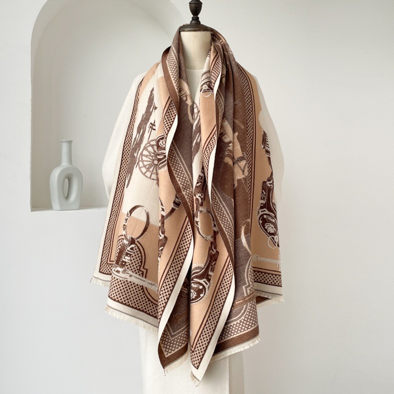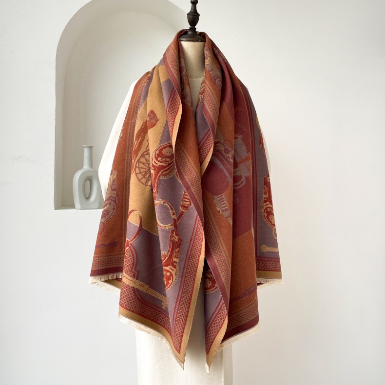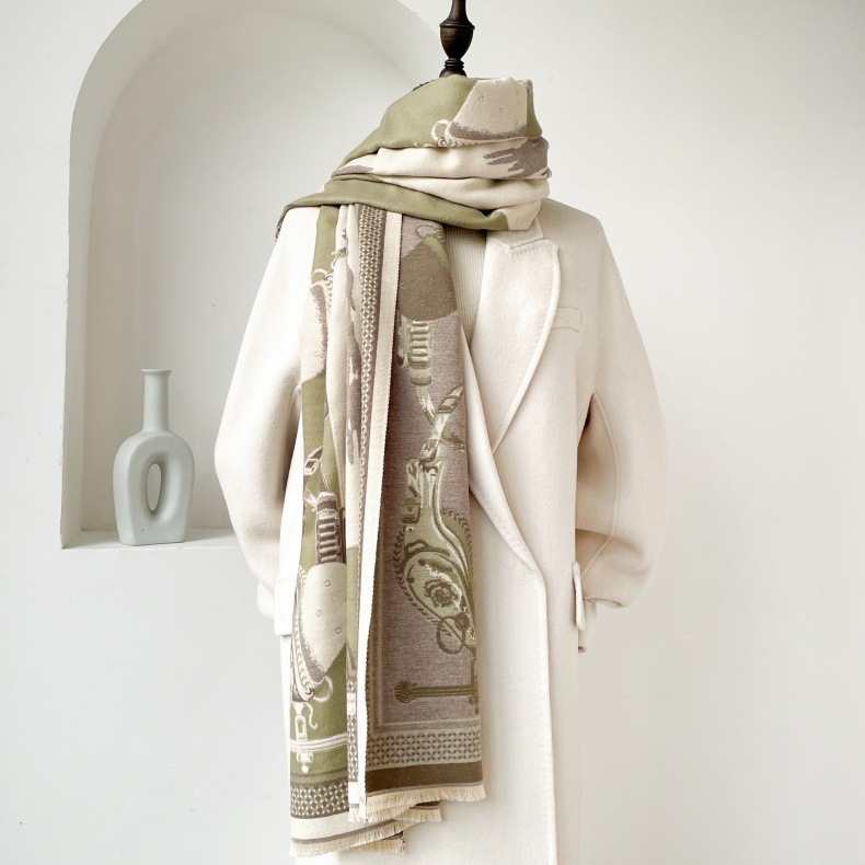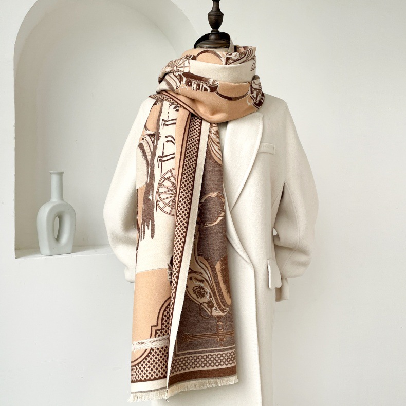 가을과 겨울 두꺼운 긴 모조 캐시미어 스카프 여성용 캐리지 자카드 짧은 수염 술 따뜻한 장식 스카프 긴 스카프스토어 가기