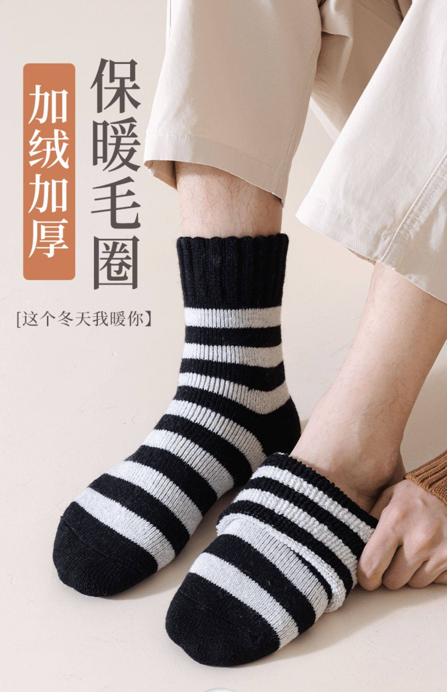 양모 양말 남자 가을과 겨울 중간 길이 양말 북동쪽 슈퍼 두꺼운 기모 두꺼운 따뜻한 높은 배럴 마일 라드 줄무늬 스타킹스토어 가기