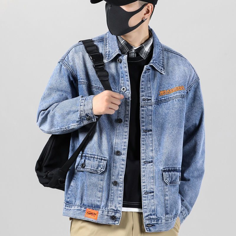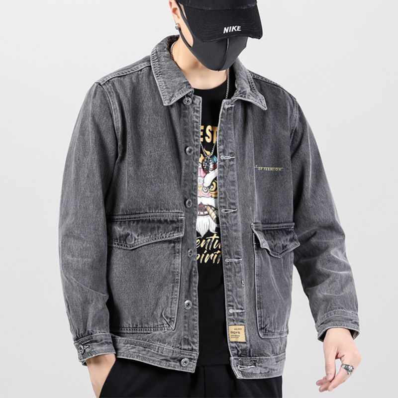 남성 플러스 뚱뚱한 재킷 데님 캐주얼 지방 남성 새로운 느슨한 도구 봄 및 가을 크기 연기 회색 남성 자켓 플러스 사이즈스토어 가기