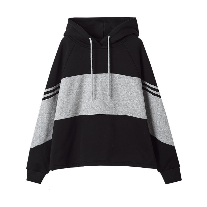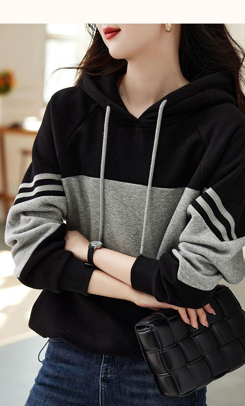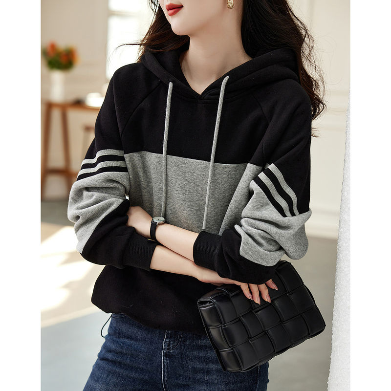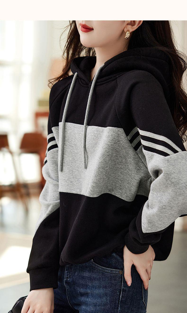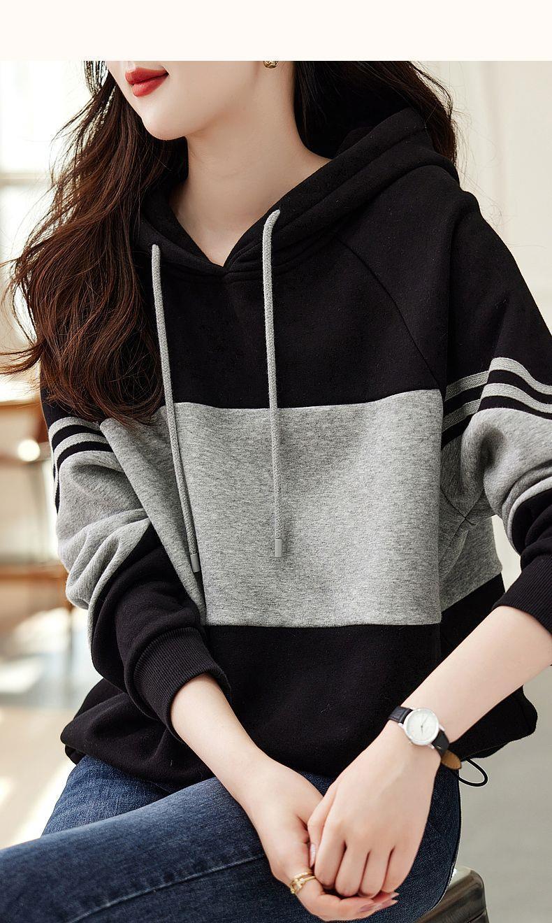 줄무늬 바느질 후드 스웨트 셔츠 여성의 봄과 가을 2024 새로운 한국식 Ins 트렌디 한 느슨한 풀오버 스타일러치 캐주얼 탑스토어 가기