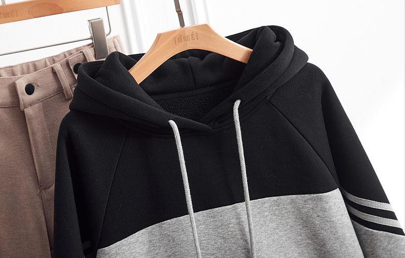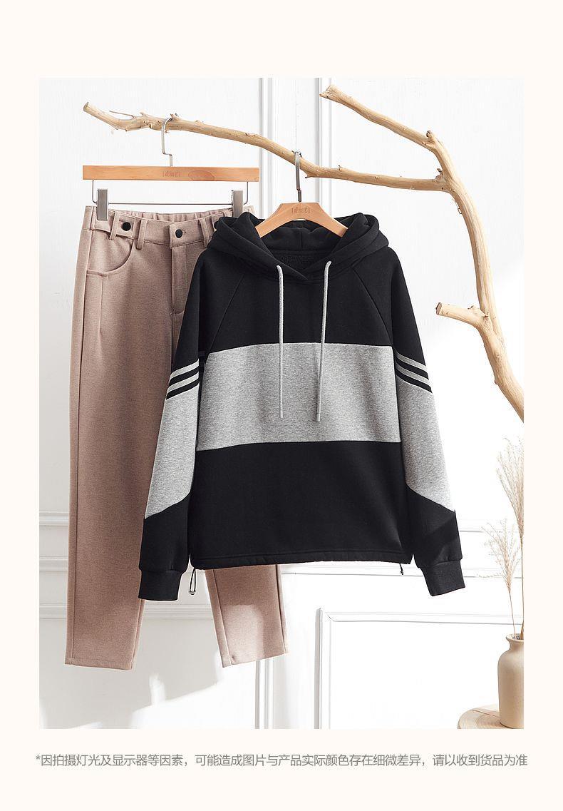 줄무늬 바느질 후드 스웨트 셔츠 여성의 봄과 가을 2024 새로운 한국식 Ins 트렌디 한 느슨한 풀오버 스타일러치 캐주얼 탑