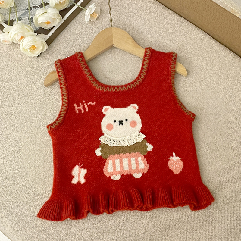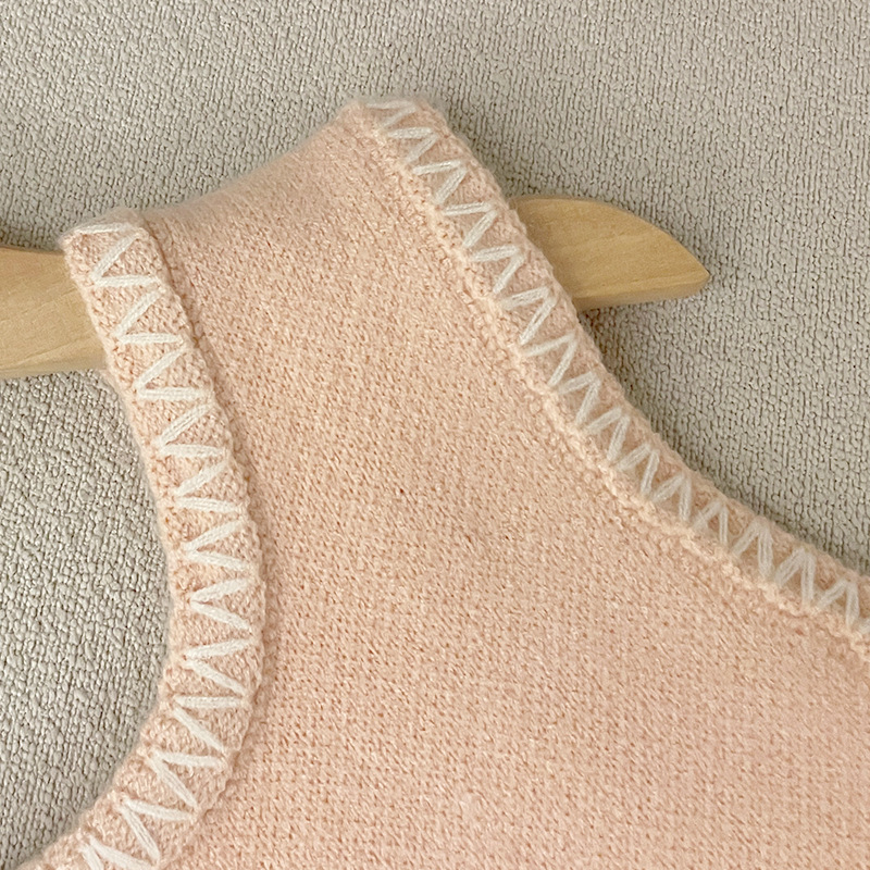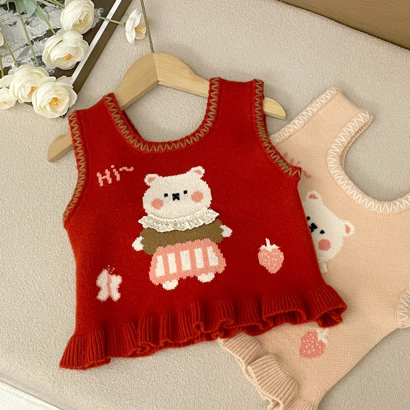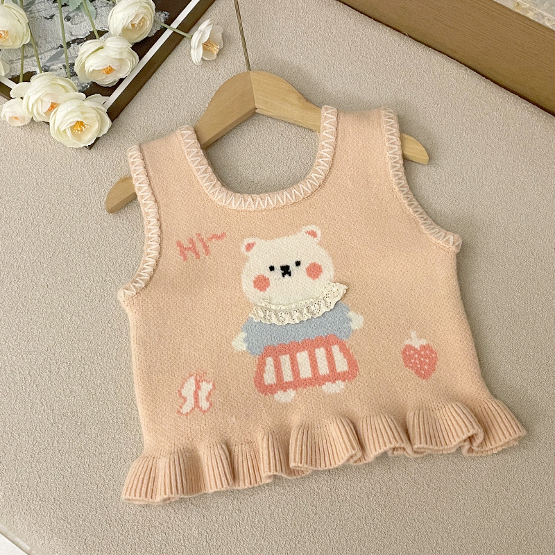 여아용 스웨터 조끼, 귀여운 스타일의 가을 겨울 니트 조끼, 새로운 스타일의 넓은 어깨 조끼, 어린이용 멋스러운 스타일의 끈 조끼스토어 가기