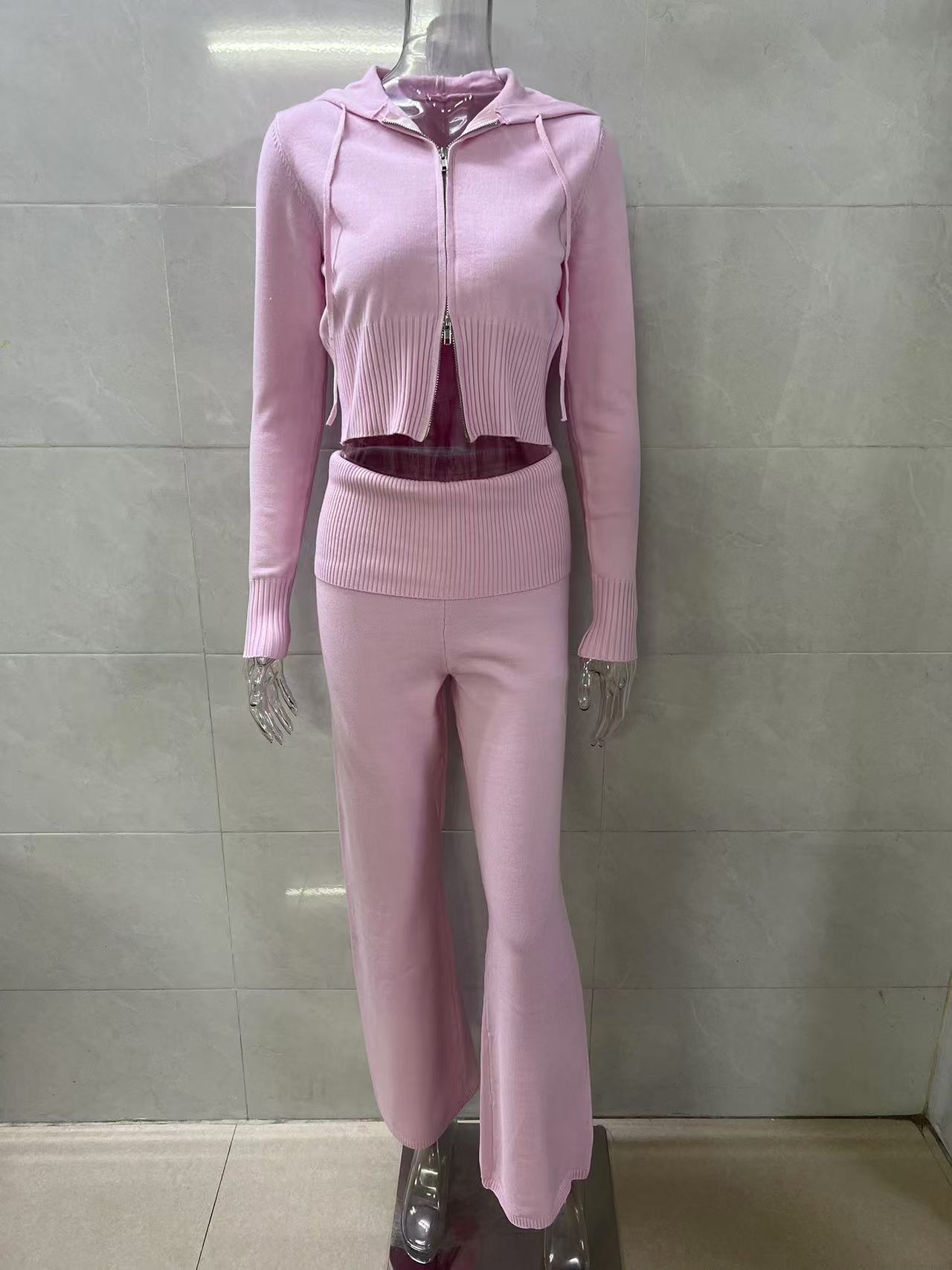 25 가을 신상 유럽 및 미국 스타일 여성용 슬림핏 숏 후드탑 캐주얼 팬츠 패션 세트 여성 투피스스토어 가기