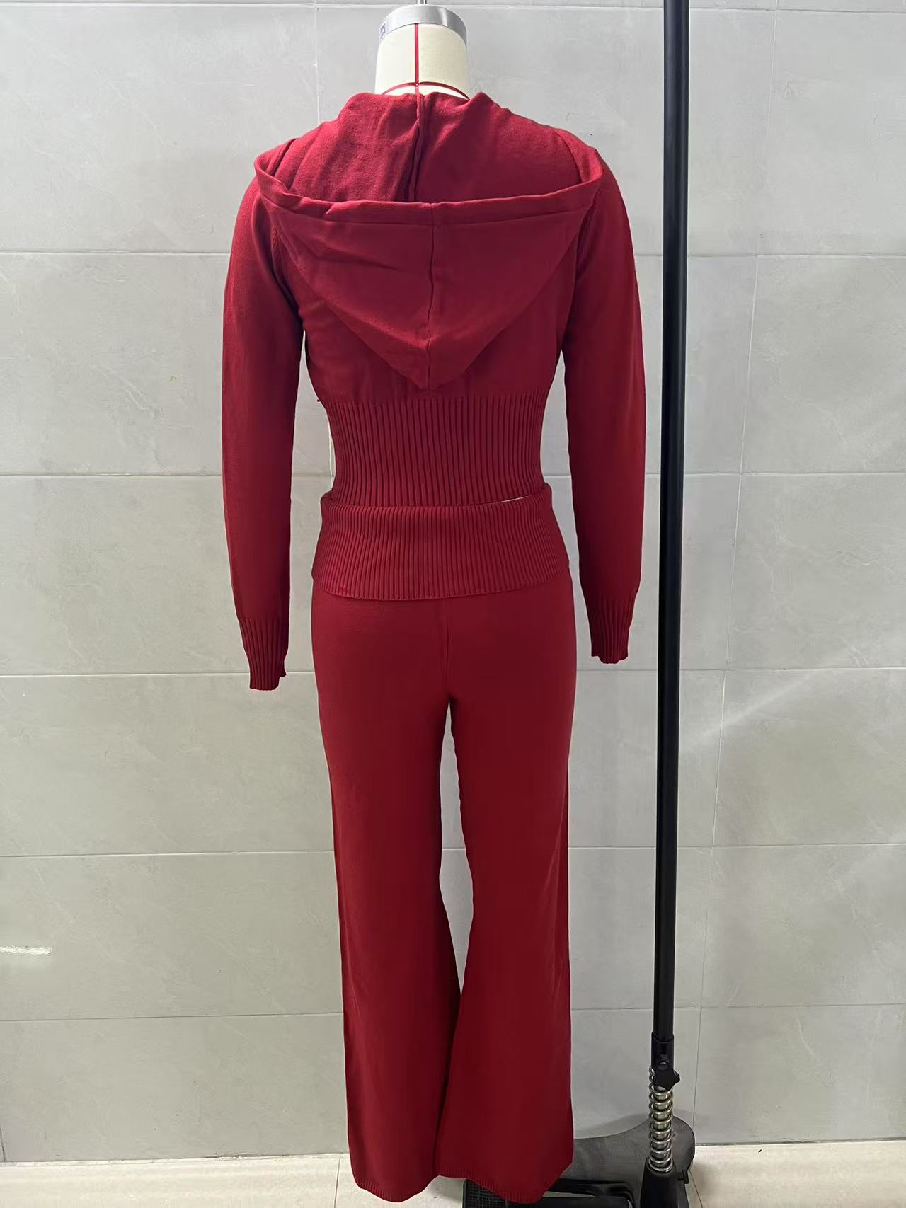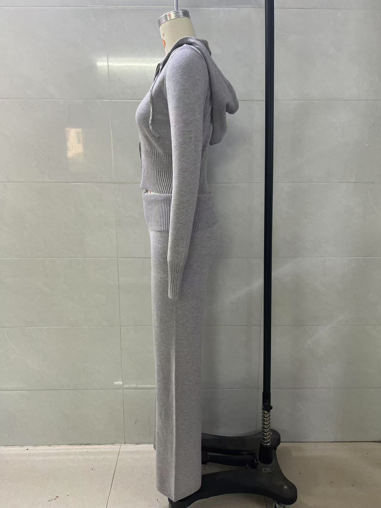 25 가을 신상 유럽 및 미국 스타일 여성용 슬림핏 숏 후드탑 캐주얼 팬츠 패션 세트 여성 투피스