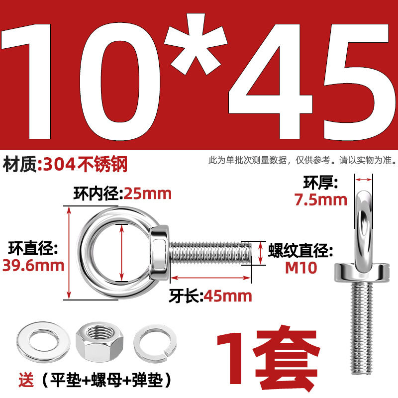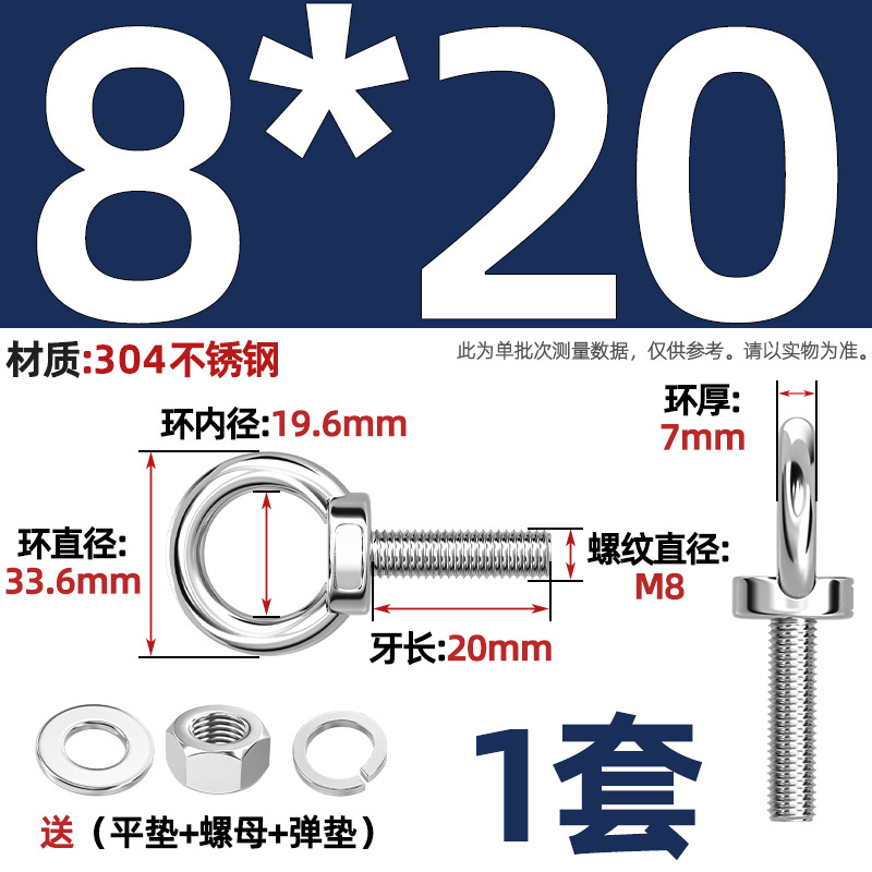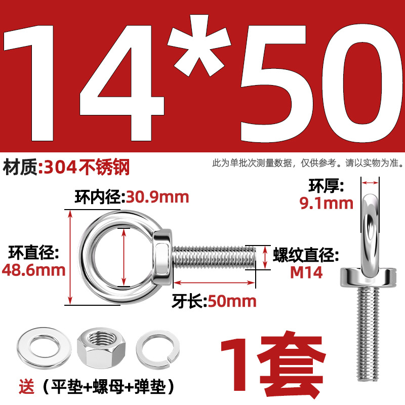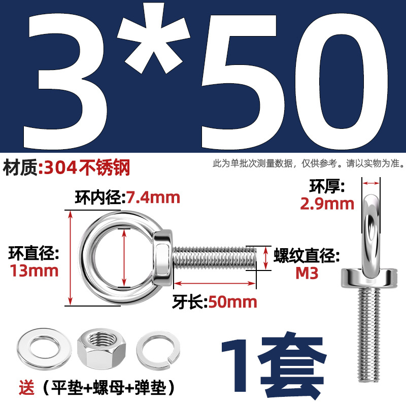 벽에 산입된 링 볼트가 포함된 국가 표준 304 스테인레스 스틸 연장형 아이리프팅 나사, 너트, 플랫 와셔 및 스프링 와셔 세트스토어 가기