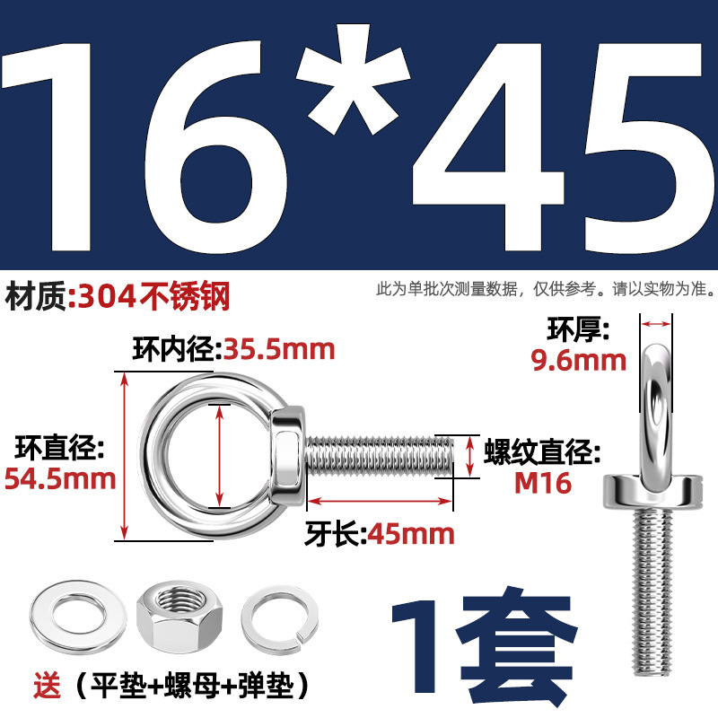 벽에 산입된 링 볼트가 포함된 국가 표준 304 스테인레스 스틸 연장형 아이리프팅 나사, 너트, 플랫 와셔 및 스프링 와셔 세트