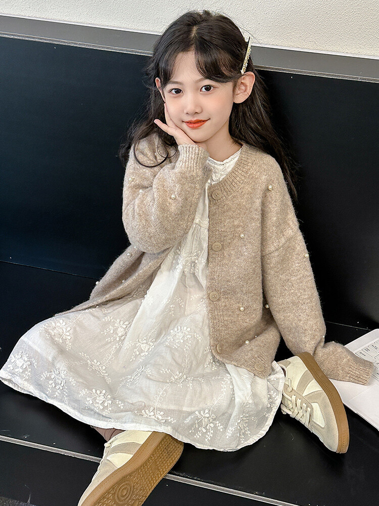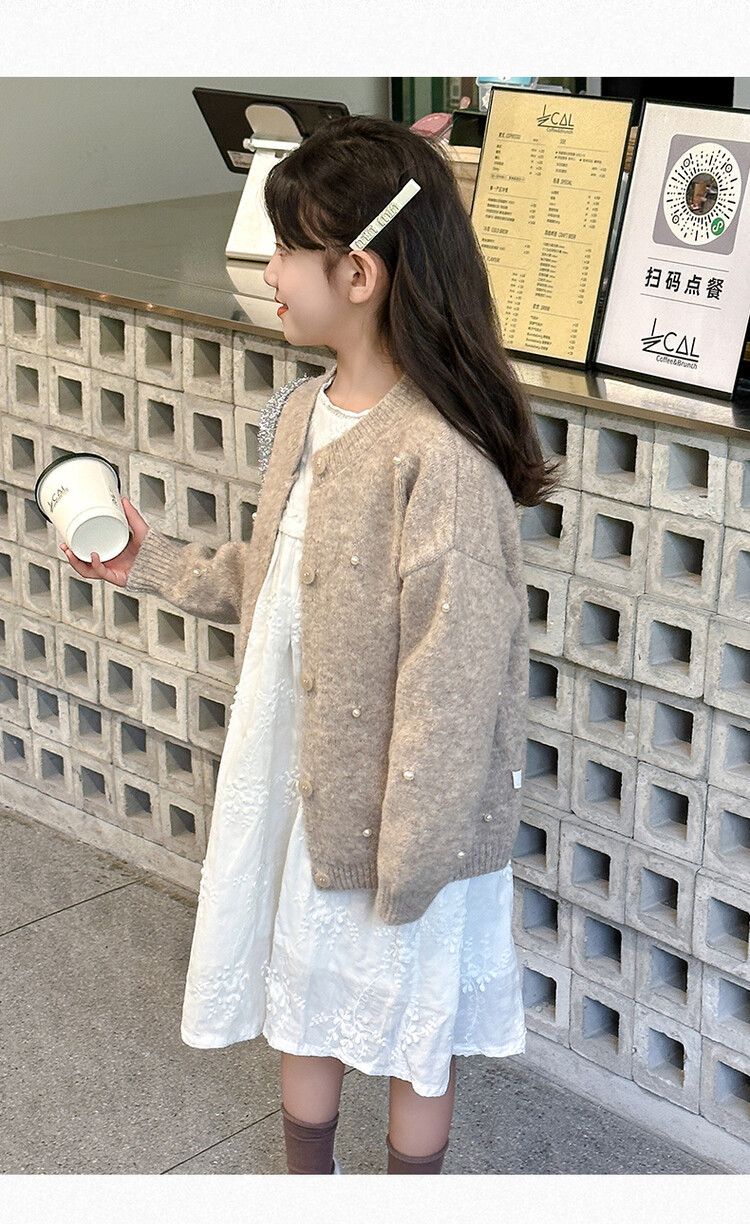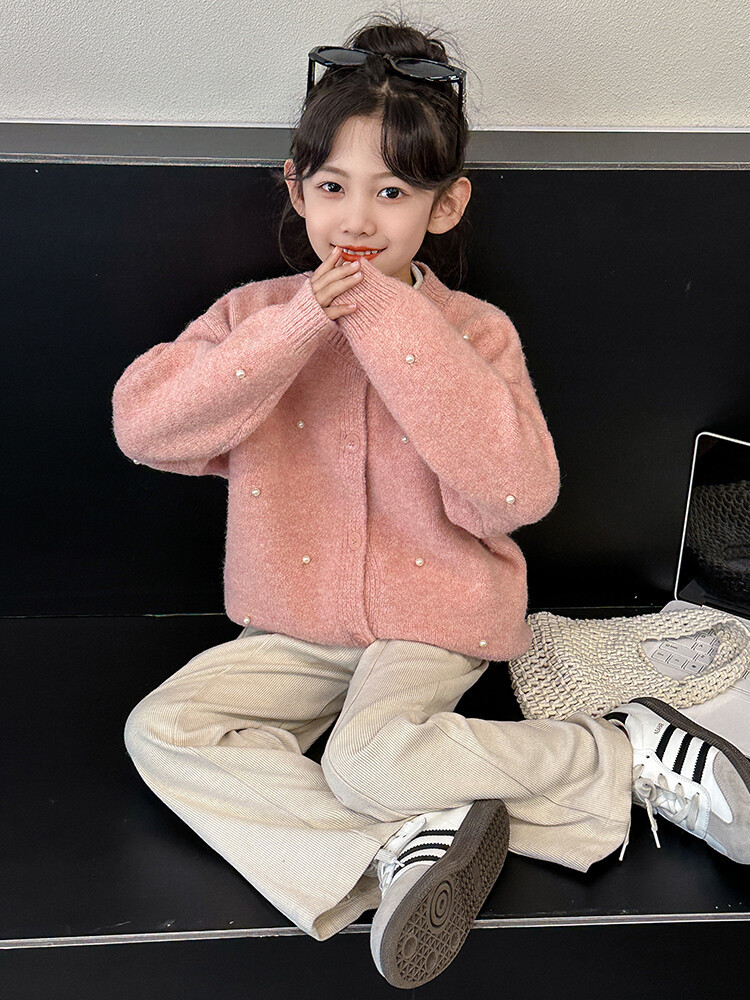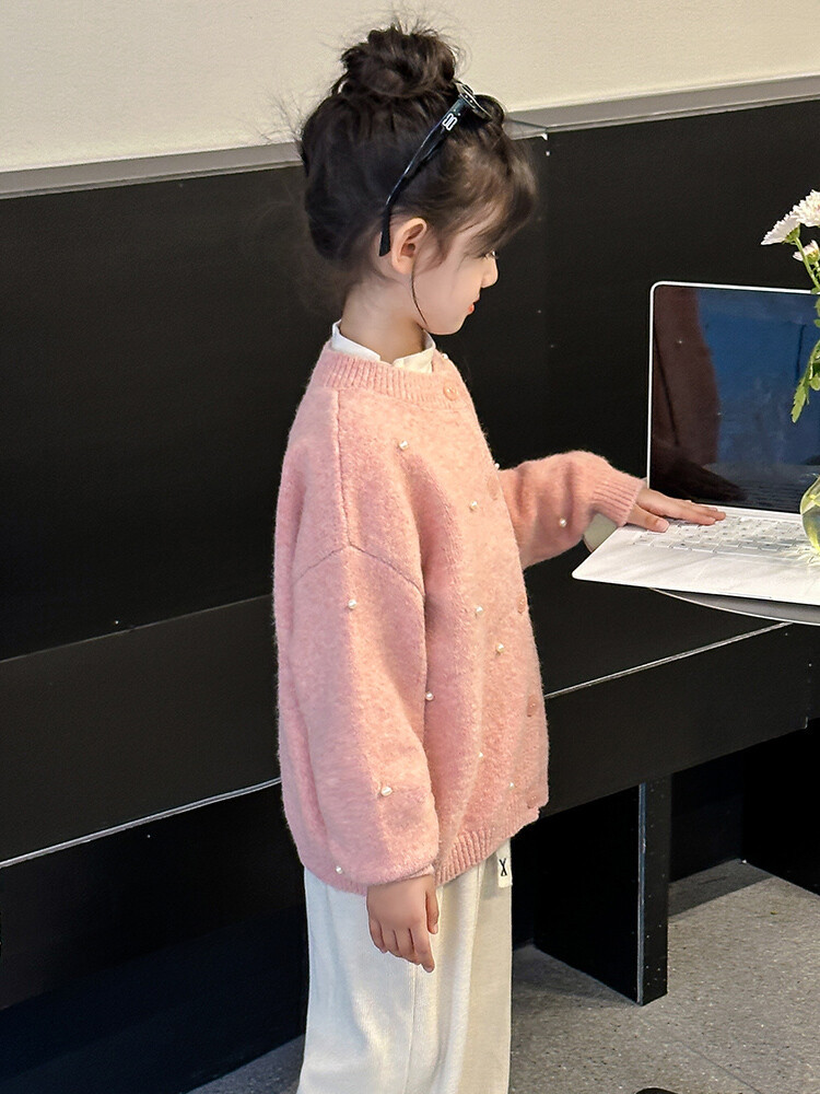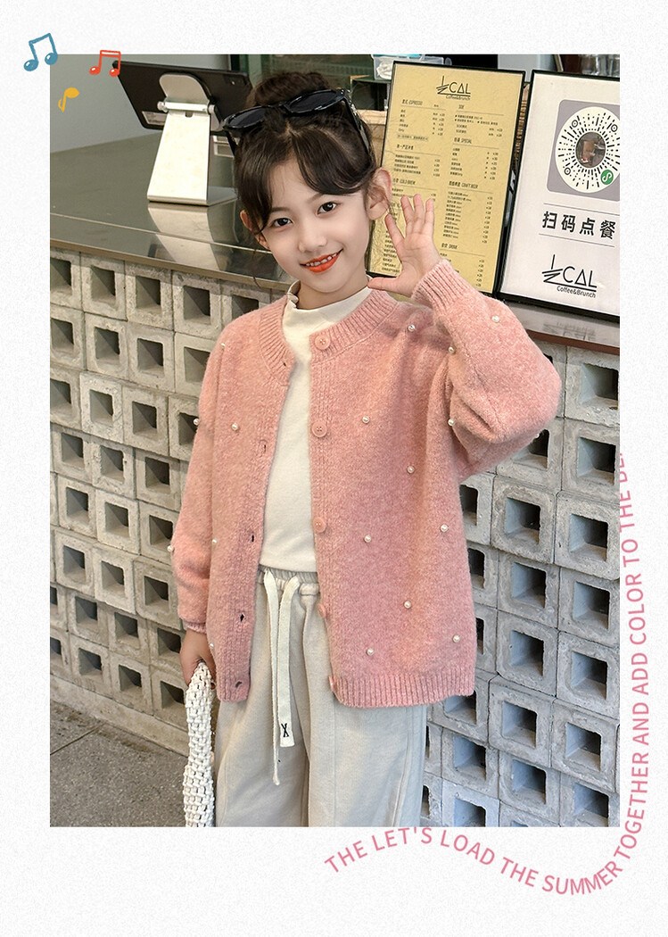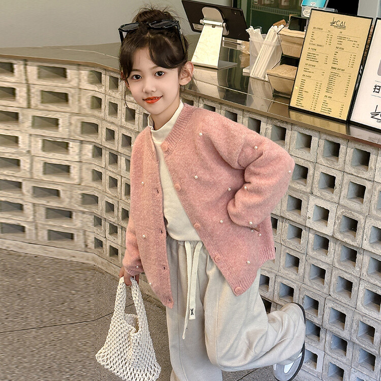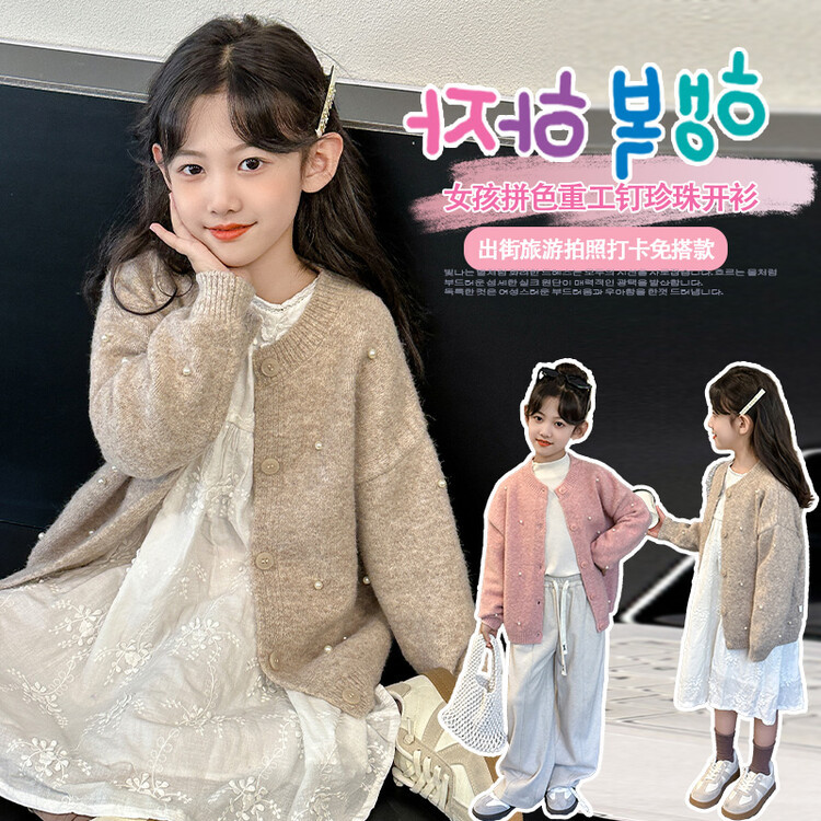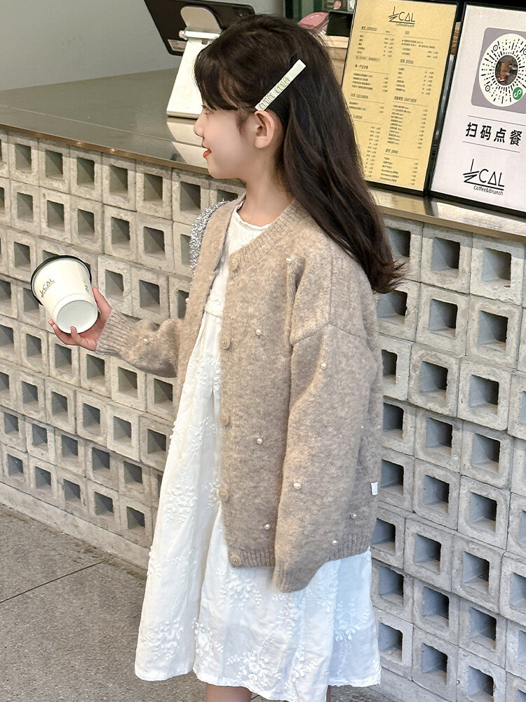 소녀 스웨터 코트 가을 2024 새로운 스타일 어린이 소녀 니트 카디건 탑 봄과 가을 중 큰 아이들스토어 가기