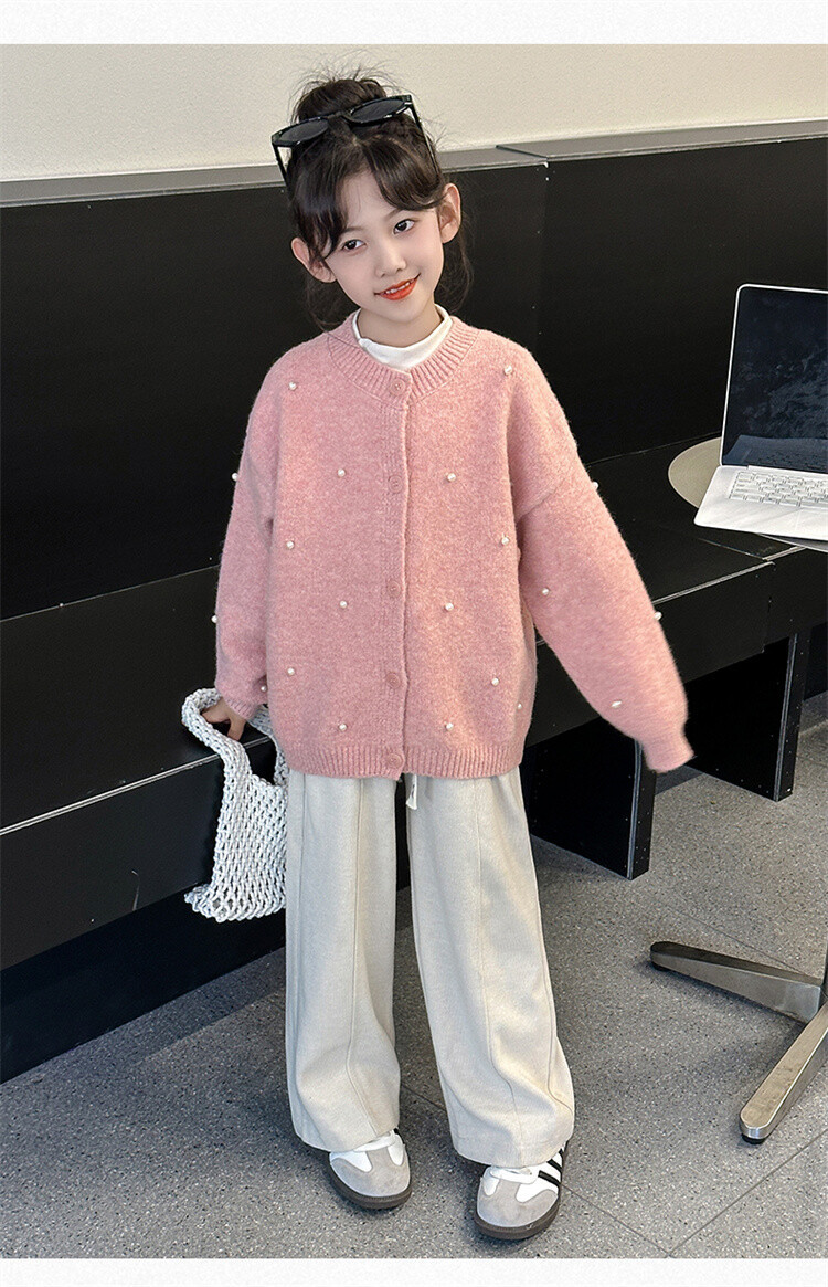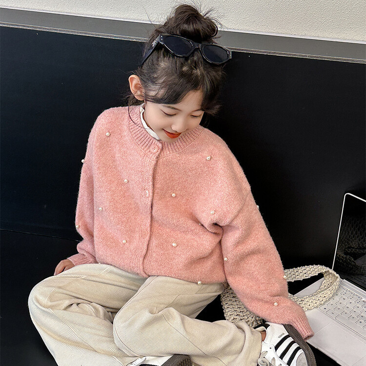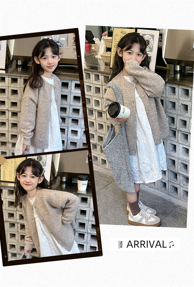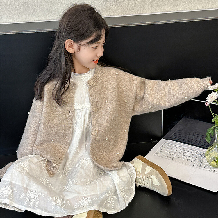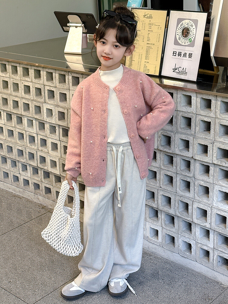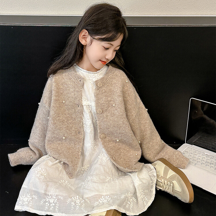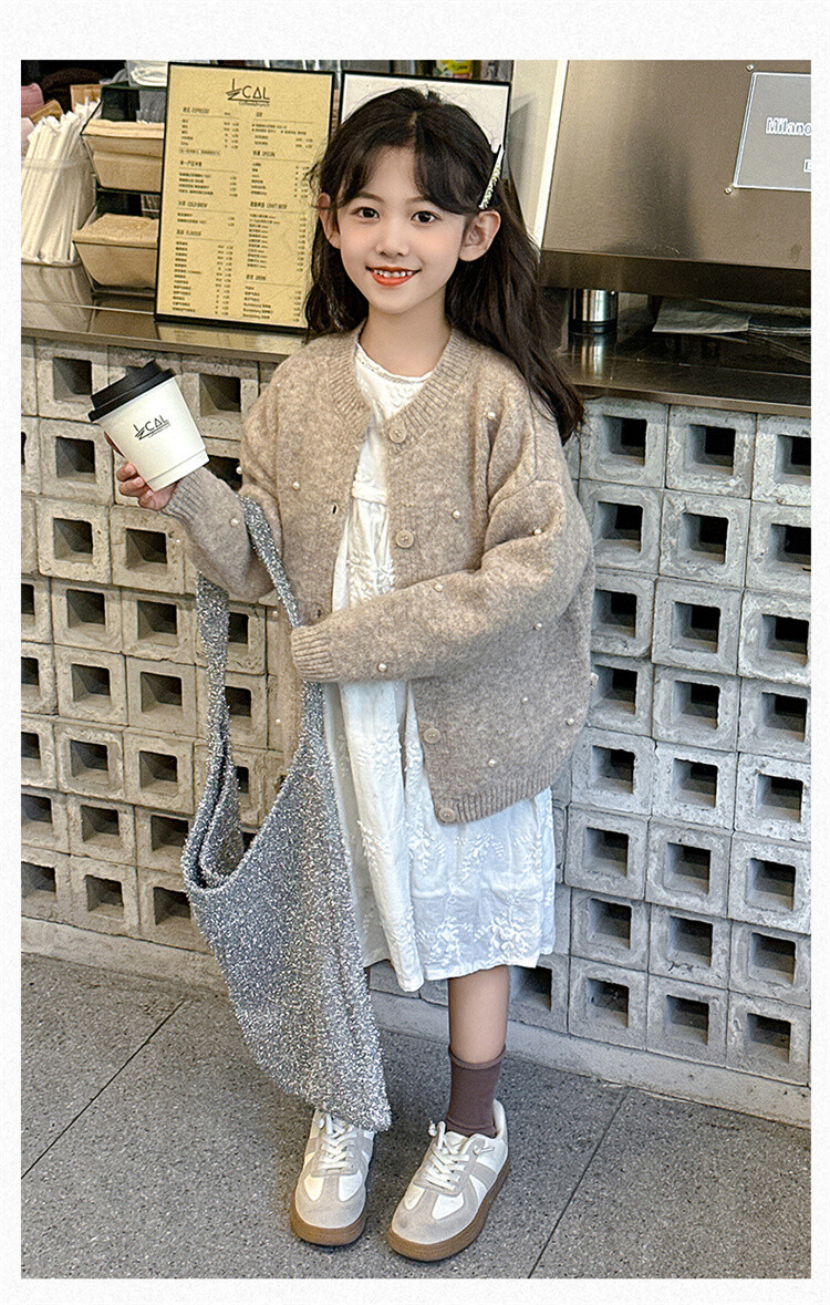 소녀 스웨터 코트 가을 2024 새로운 스타일 어린이 소녀 니트 카디건 탑 봄과 가을 중 큰 아이들스토어 가기